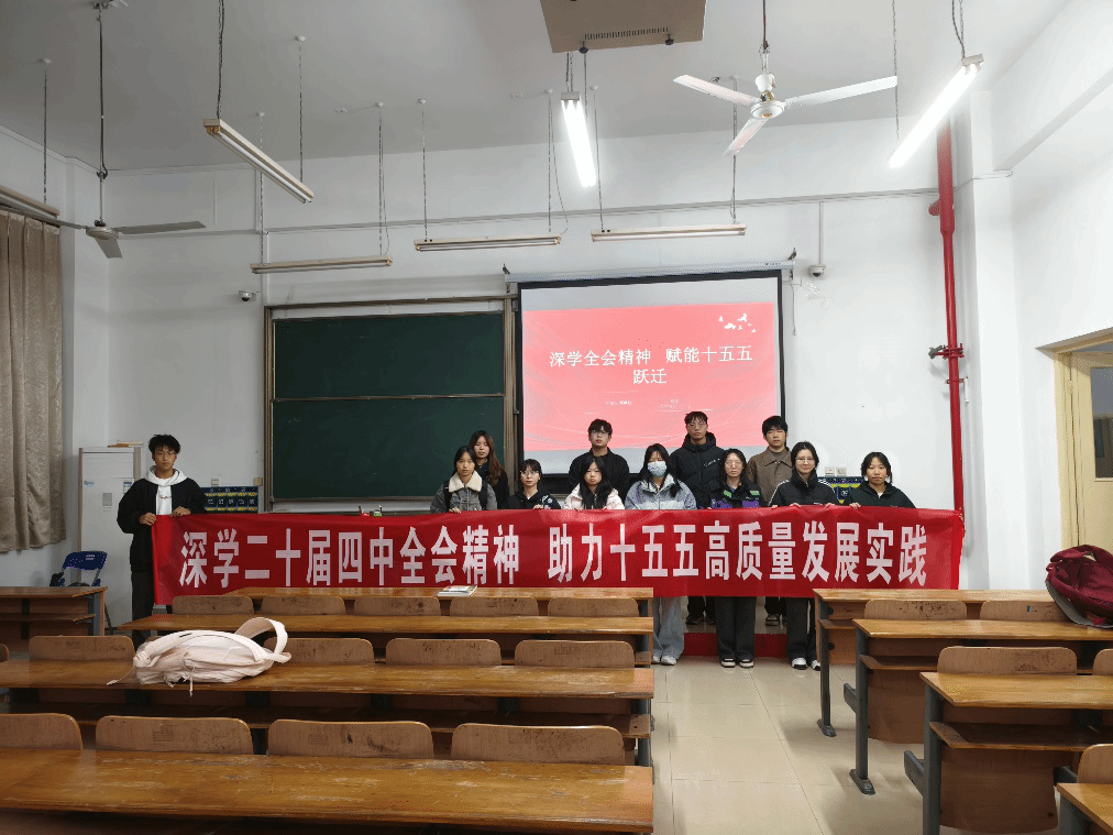 为深入学习党的二十届四中全会精神,我院第52期党校入党积极分子培训班第二小组全体成员于11月19日在1-106教室举行了“深学全会精神 赋能十五五跃迁”实践活动。