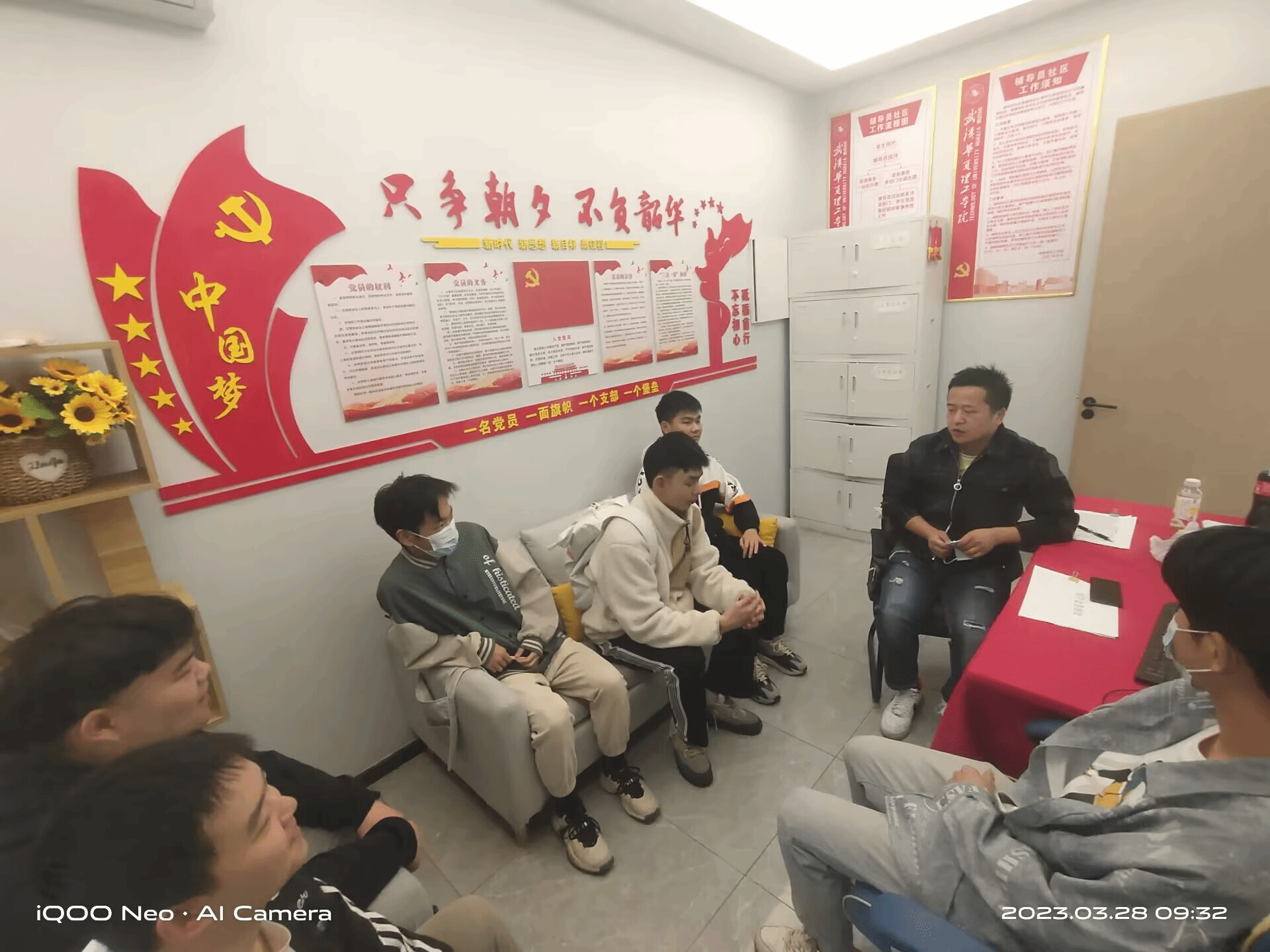 2023年3月28日,信息学院学生第一党支部在辅导员社区值班室开展了专升本年级新生入党知识宣讲活动。会议由信息学院学生第一党支部书记李勇主持,党支部组员褚建邦、喻子雄及5名2020级专升本新生参加。