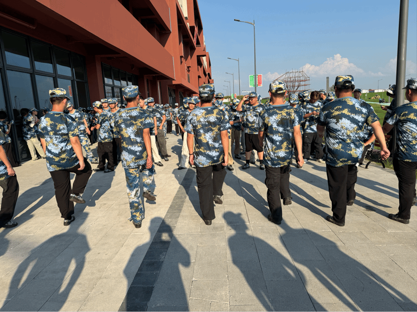 在今天的训练内容里,跑步和齐步走成为了主角。起初,同学们的动作参差不齐,跑步时步伐轻重不一,齐步走时手臂摆动的高度和节奏也难以统一。但在教官不厌其烦的指导下,大家逐渐找到了感觉。从分解动作的练习,到连贯动作的反复磨合,每一位同学都全力以赴。汗水顺着脸颊滑落,浸湿了衣衫,但没有一个人喊累。渐渐地,队伍变得整齐有序,跑步时脚步声铿锵有力,齐步走时手臂摆动整齐划一,展现出了良好的团队协作精神和坚韧的毅力。