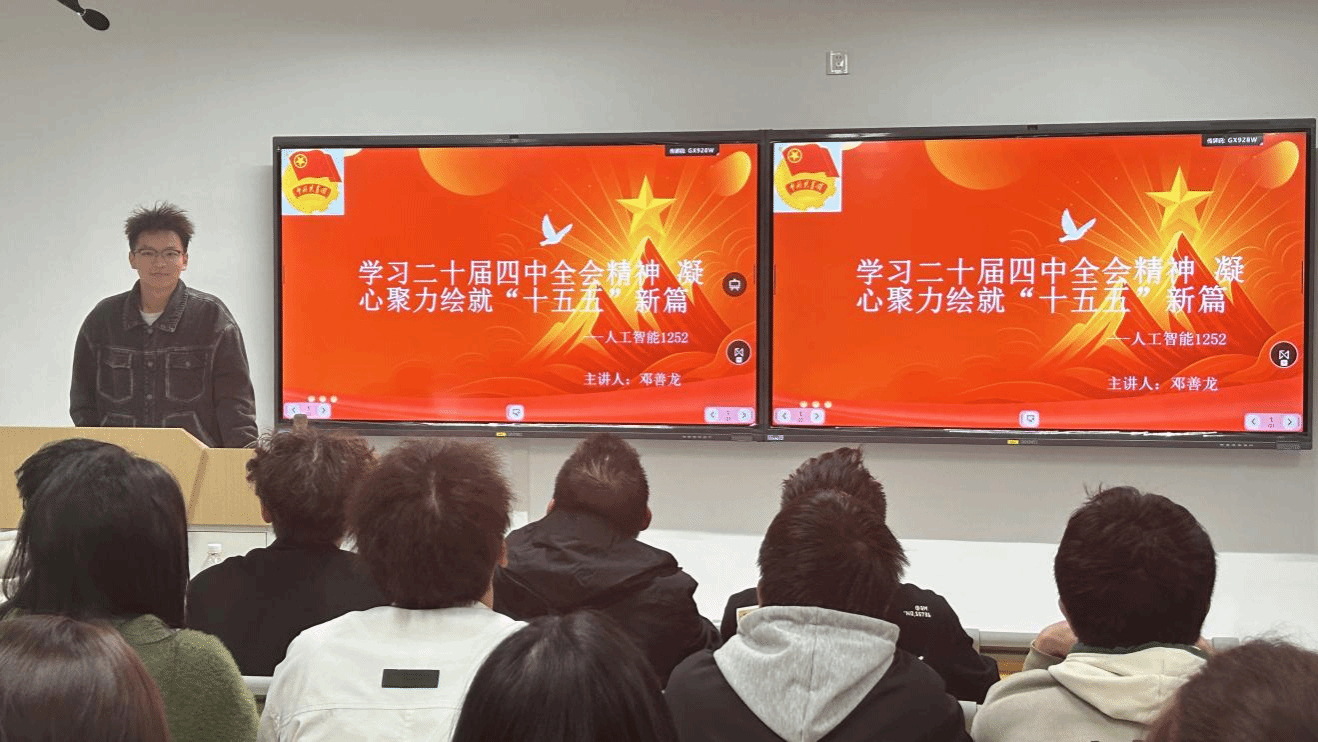 2025年11月10日,为深入学习贯彻党的二十大精神,引导青年学子坚定理想信念,勇担时代使命,信息工程学院人工智能1252班组织开展了“学习二十大精神”主题班级团会。团会由班委会和团支部联合策划,全班同学积极参与,通过集体学习、交流研讨等形式,掀起学习热潮。