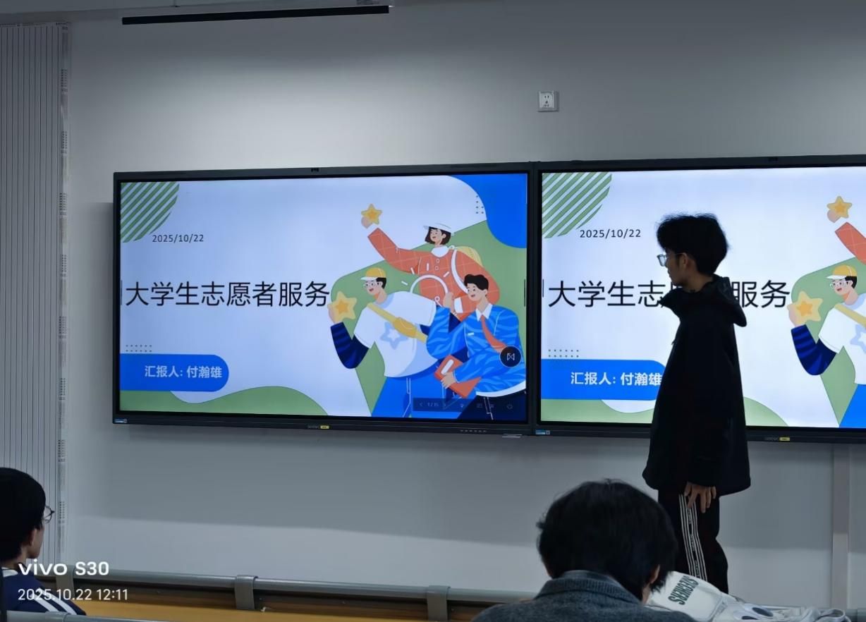 为彰显青年担当,凝聚志愿力量。 2025年10月24日,我院团总支在梧桐湖校区B308教室开展志愿服务精神学习活动。活动由负责人付瀚雄和部门全体同学参加。