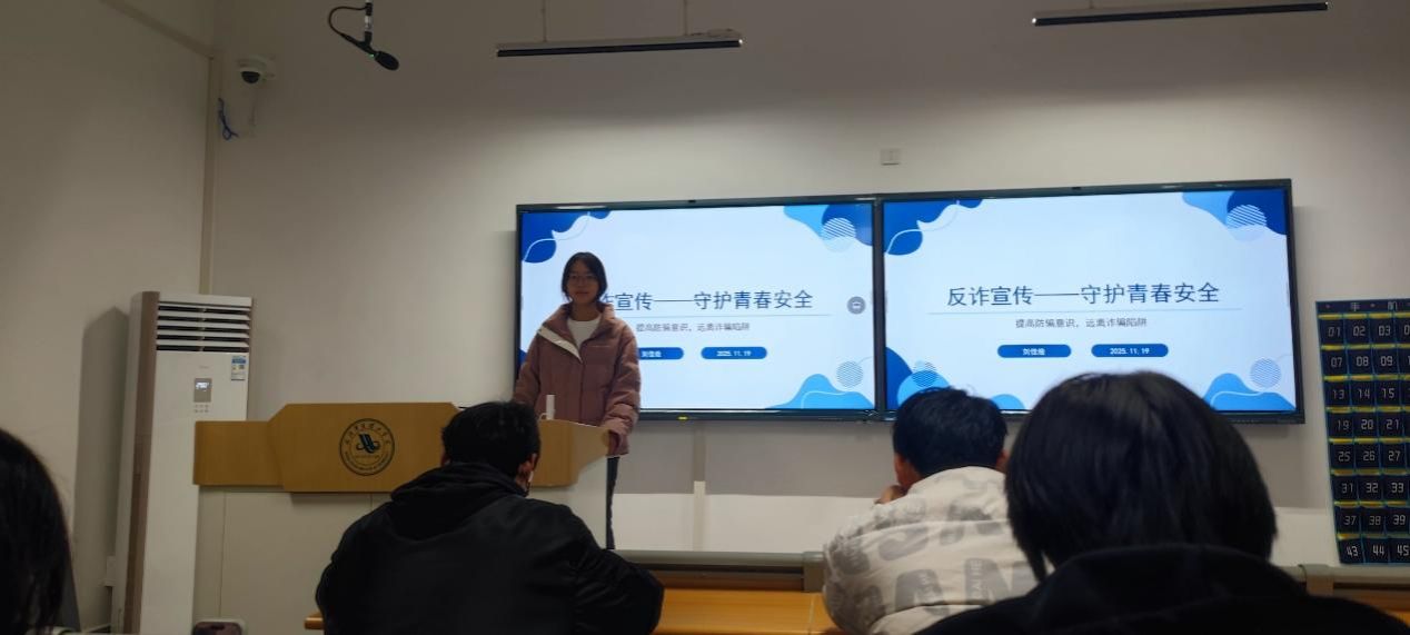 为切实提高学生防骗意识和自我保护能力,帮助大家远离电信网络诈骗陷阱,11 月 19 日,我院计算机1254班以 “反诈宣传 —— 守护青春安全” 为主题的班会活动。班会由团支书刘佳烩主讲,计算机1254全体同学参加。
