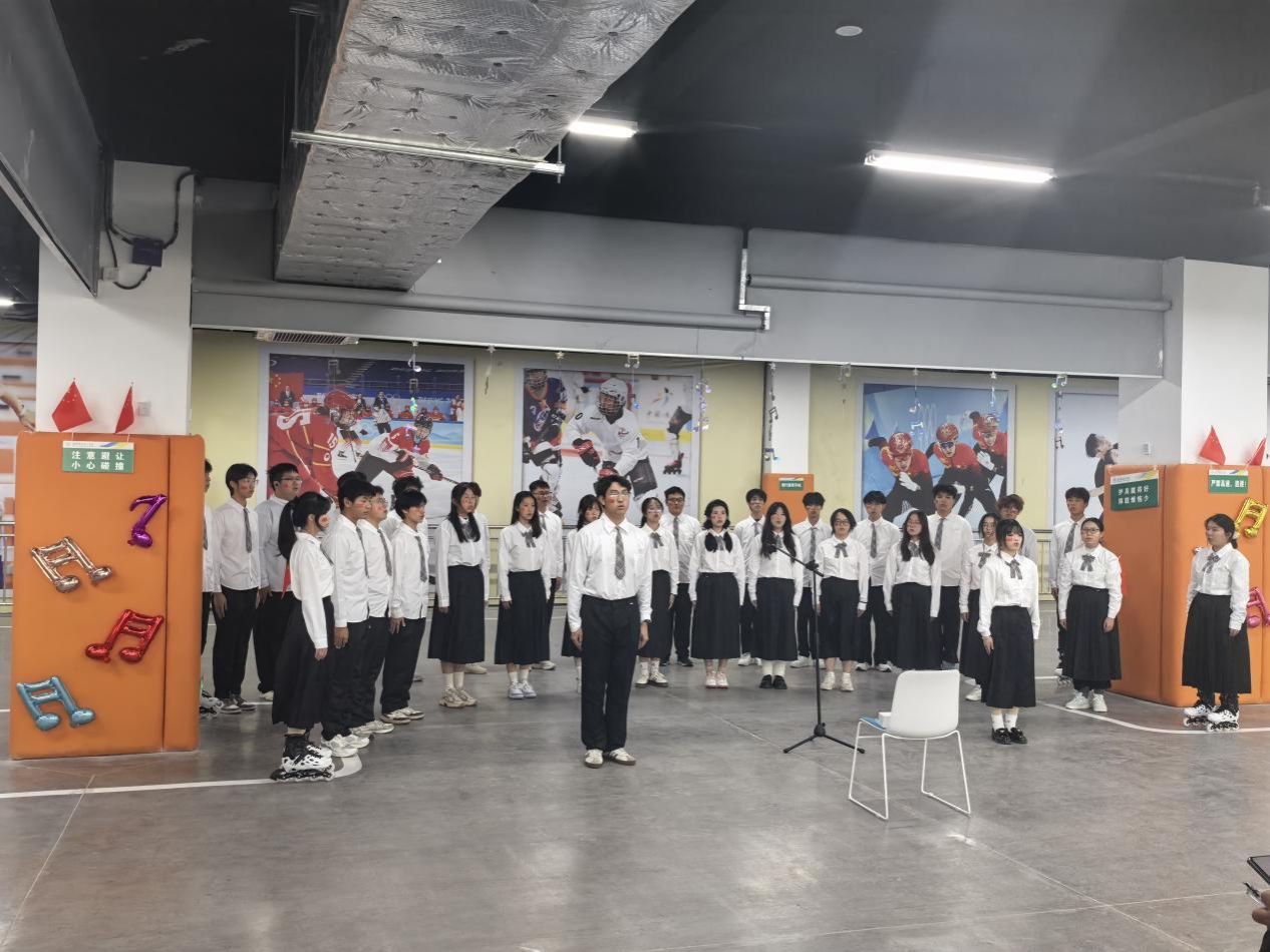 当日决赛现场,各学院参赛队伍依次登台,以歌声回溯“一二·九”爱国运动的峥嵘岁月。作为信息工程学院的代表队伍,软件1252班学子身着统一青春制服登场,伴随伴奏旋律响起,清亮的领唱与层次分明的和声交织展开——既有红色经典的厚重质感,又融入新时代青年的蓬勃朝气,演唱中整齐的动作、饱满的情感,将“以歌为炬传薪火”的活动内核诠释得淋漓尽致,现场掌声与喝彩声接连响起。