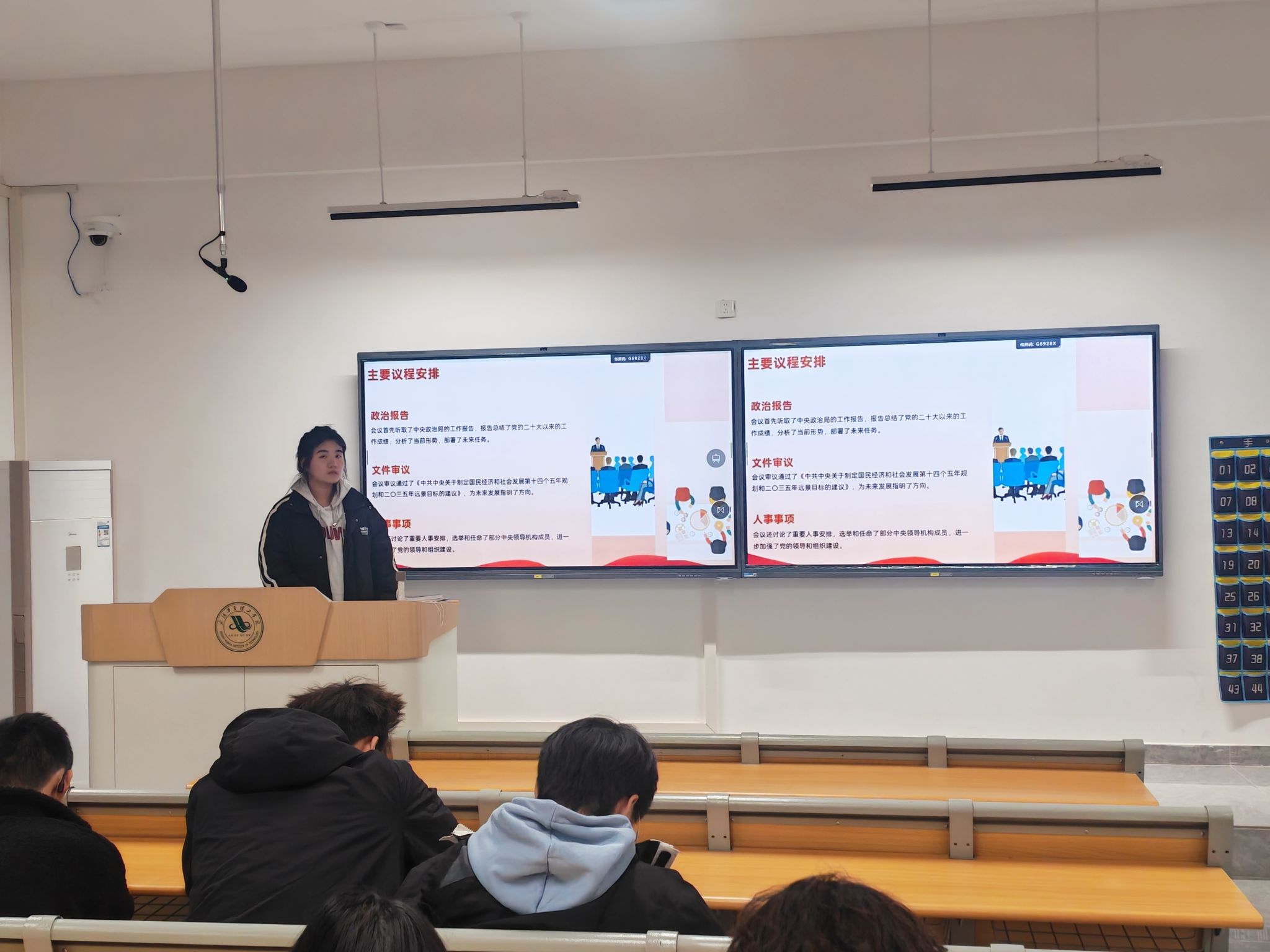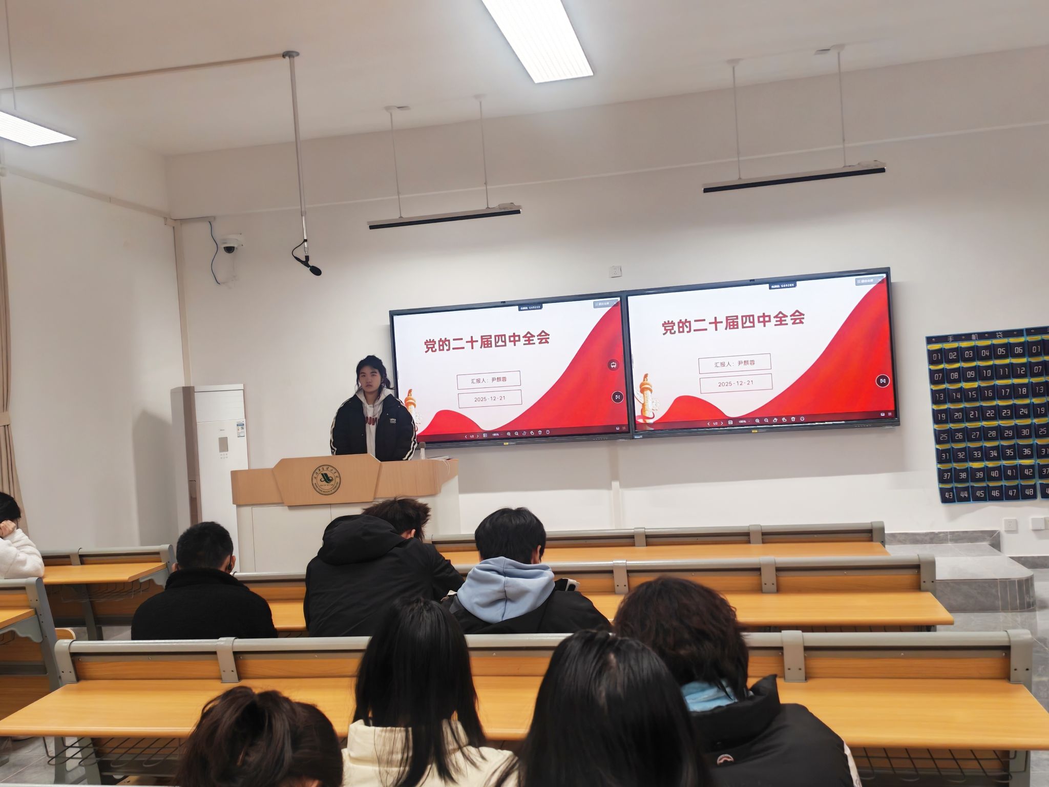 为深入学习贯彻党的二十届四中全会精神,引导青年学生准确把握全会核心要义与实践要求,11月5日下午14:30,武汉华夏理工学院信息工程学院学生会宣传部于梧桐湖校区B208教室开展二十届四中全会精神学习宣讲活动。此次活动由宣传部部长尹麒蓉主持,宣传部全体成员及学院部分团员代表参与。