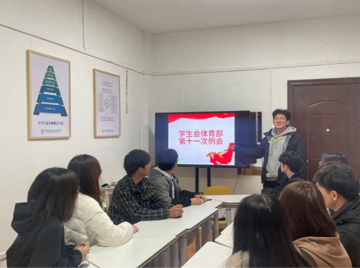 此次会议既是工作总结会、任务部署会,更是全员动员会。部员们要再接再厉,克服懒惰与惧怕,以积极的态度投身于未来的工作中。最后,部长感谢部员们对部门工作的支持,期待与部员们继续携手共进,奋楫笃行,让体育部蓬勃发展!