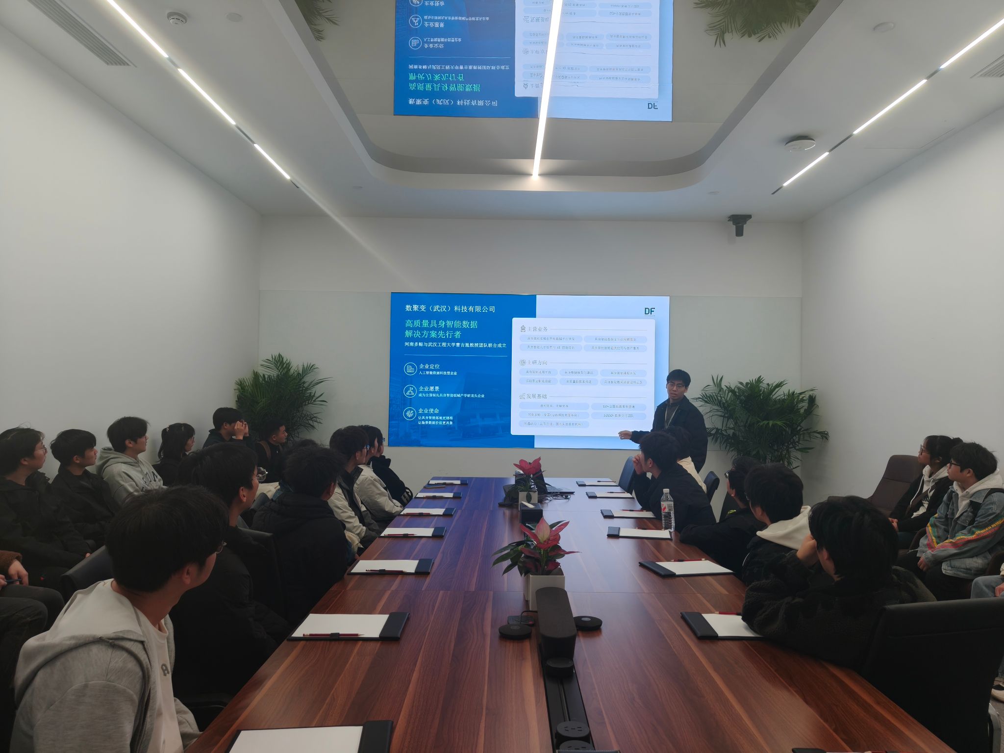 为进一步强化就业市场建设,完善就业服务体系,更好的向社会输送应用型人才。11月21日,我院毕业班辅导员李勇、万王旋携20余名2026届毕业生赴数聚变(武汉)科技有限公司参观与面试。