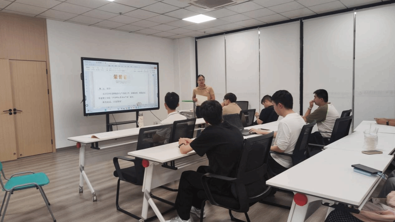 随后进入颁奖环节,苏老师为张沁、李国泰同学颁发“产学研工作室优秀学生干部”奖项。她高度肯定了两位同学在工作室管理中的突出贡献,号召全体成员以他们为榜样,在实践中锤炼责任意识与领导力。获奖同学接过证书时,会场响起热烈掌声,充分体现了工作室的团结与奉献精神。