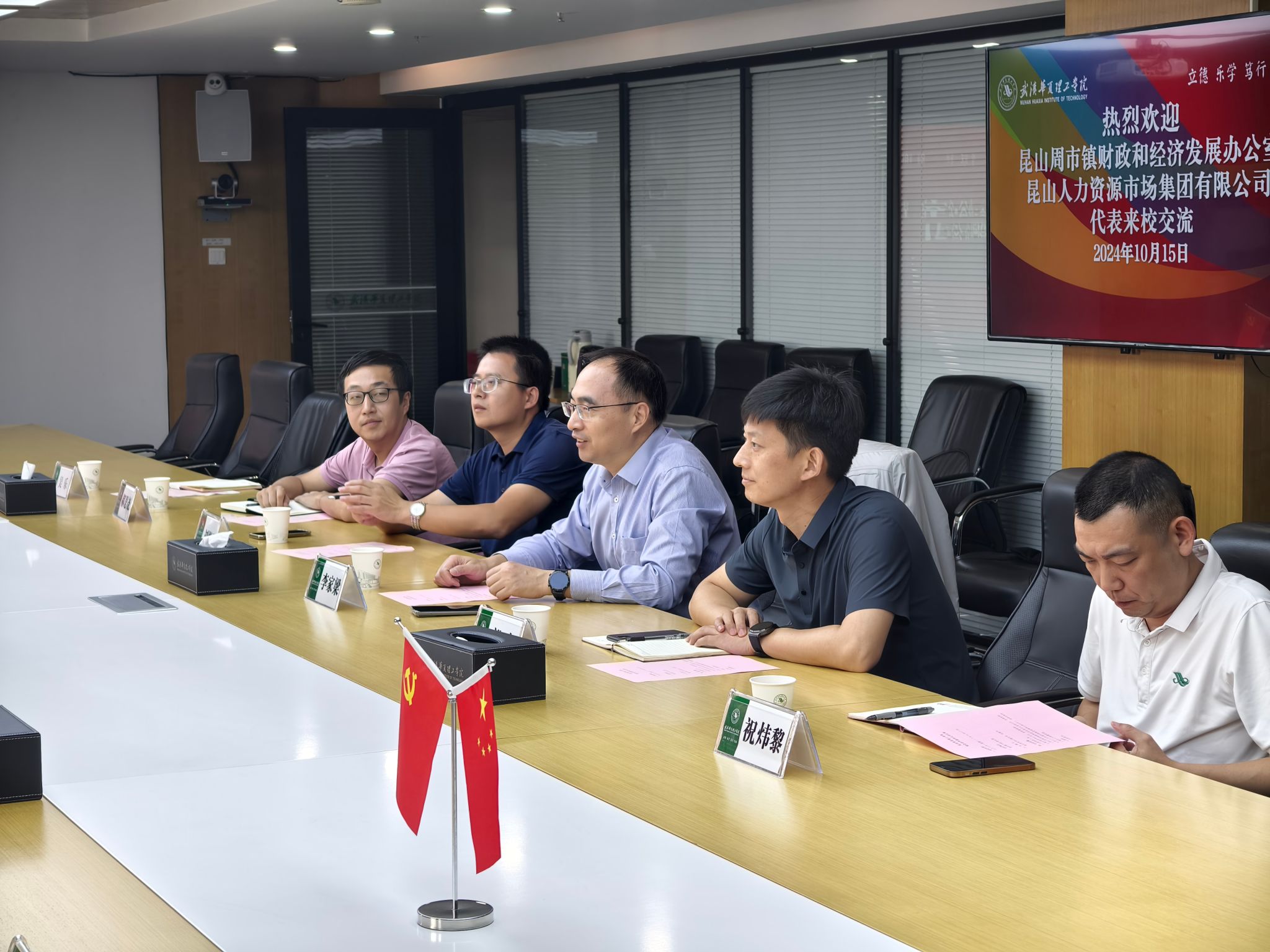 10月15日下午,由昆山人力资源市场集团,会同昆山周市财经局,携辖区5家规模企业,来我校开展政校企交流活动,学校就业创业中心、校友会、智能制造学院、信息工程学院等负责人参加交流会,会议由就业创业中心副主任刘继平主持。