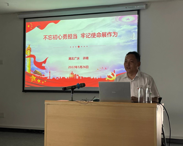 在党课讲授中,许琦指出,党的历史是最生动、最有说服力的教科书,我们党历来重视党史学习教育,注重用党的奋斗历程和伟大成就鼓舞斗志、明确方向,用党的光荣传统和优良作风坚定信念、砥砺品格。随后,他用朴实的语言,深情而全面地讲述了我们党是如何团结带领全国人民实现中华民族从昔日的“东亚病夫”到站起来、富起来、强起来的伟大飞跃,他呼吁毕业生党员从党史这本“教科书”、这支“营养剂”、这门“必修课”中读懂“家国情怀”,感悟“团结伟力”,领会“初心使命”,让共产党人的精神谱系成为培根铸魂的生动教材,启智润心的丰厚滋养。
