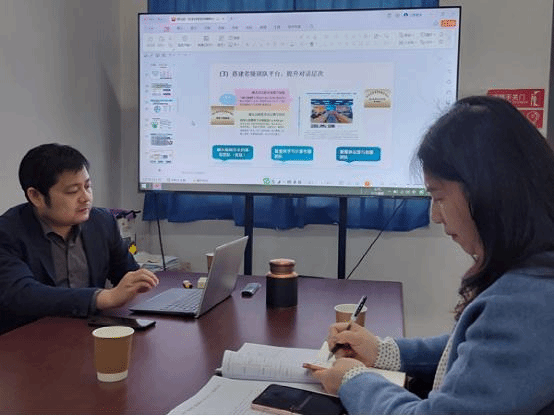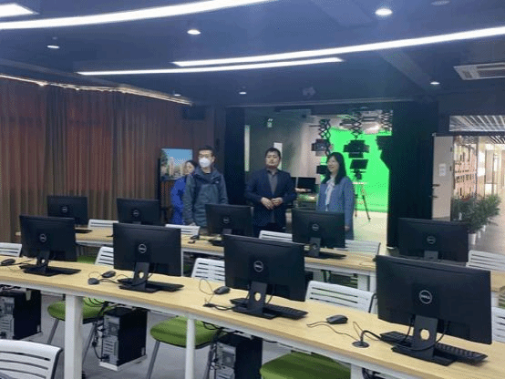 在参观过程中,郑主任和樊老师对媒体融合仿真实验中心内的智慧教育技术应用实验室、融媒体实验室、虚拟演播与摄影实验室、大数据分析实验室、视听包装与运营实验室的各自特色、功能、教学方式和成果进行了详细的介绍。随后,余院长和郑主任向蔡姗介绍了新闻与文法学院网络与新媒体专业在近几年中的发展经验与收获。双方还就一流本科专业建设思路、教师团队平台搭建方向、网络与新媒体专业人才培养计划、智能背景下融媒体仿真实践教学等内容进行了深入地探讨和交流。