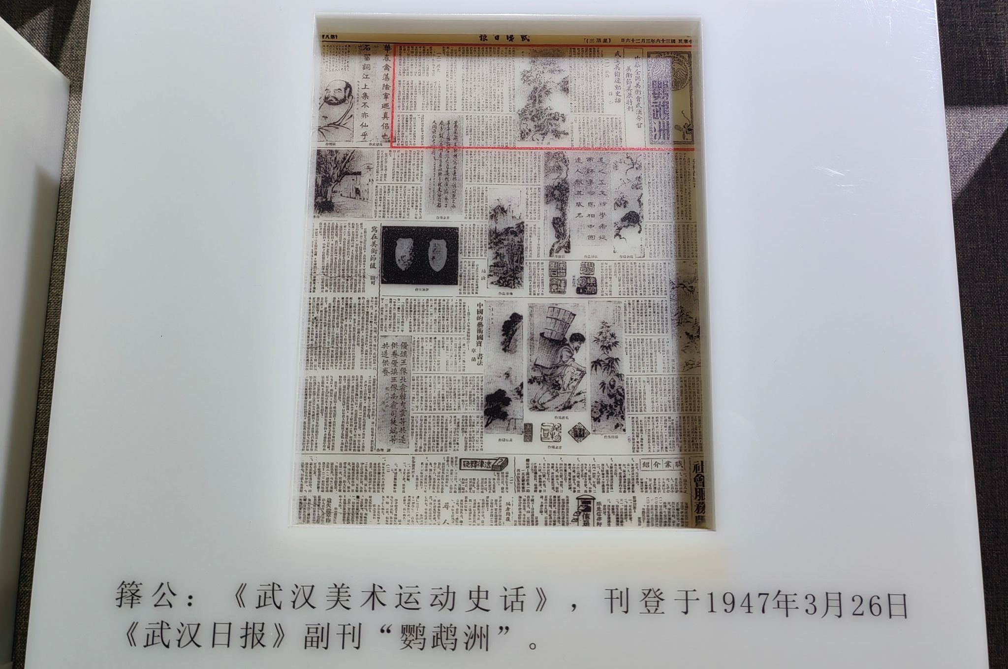 看完一、二楼的主题展,同学们又前往三楼展厅。三楼是主题为“百年纵横:20世纪湖北美术文献展”,是湖北美术馆以地域美术史为课题策划实施的固定陈列展,反映的是近百年来湖北美术发展的主要脉络和创作成果。展厅陈列着“民国时期美术”(1911-1949)、“新中国时期美术”(1949-1978)、“新时期美术”(1979-2000)三个部分的美术成果。同学们沿着文字的介绍和指引,欣赏着历史保留下来的优秀美术作品,一幅幅精美而珍贵的美术绘画作品、插图、文献、手稿、印刷品......渐渐将我们拉回了那个时代,同学们在作品前停下很久,驻足拍摄。