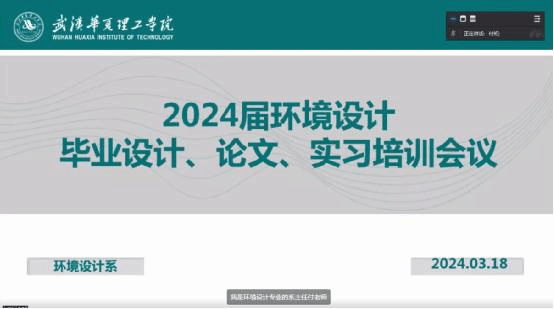 2024年03月18日晚8:30,环境设计系召开2024届环境设计毕业设计培训会议。本次会议主要对环境设计系2024届毕业生下学期课程、毕业设计及论文展开培训。