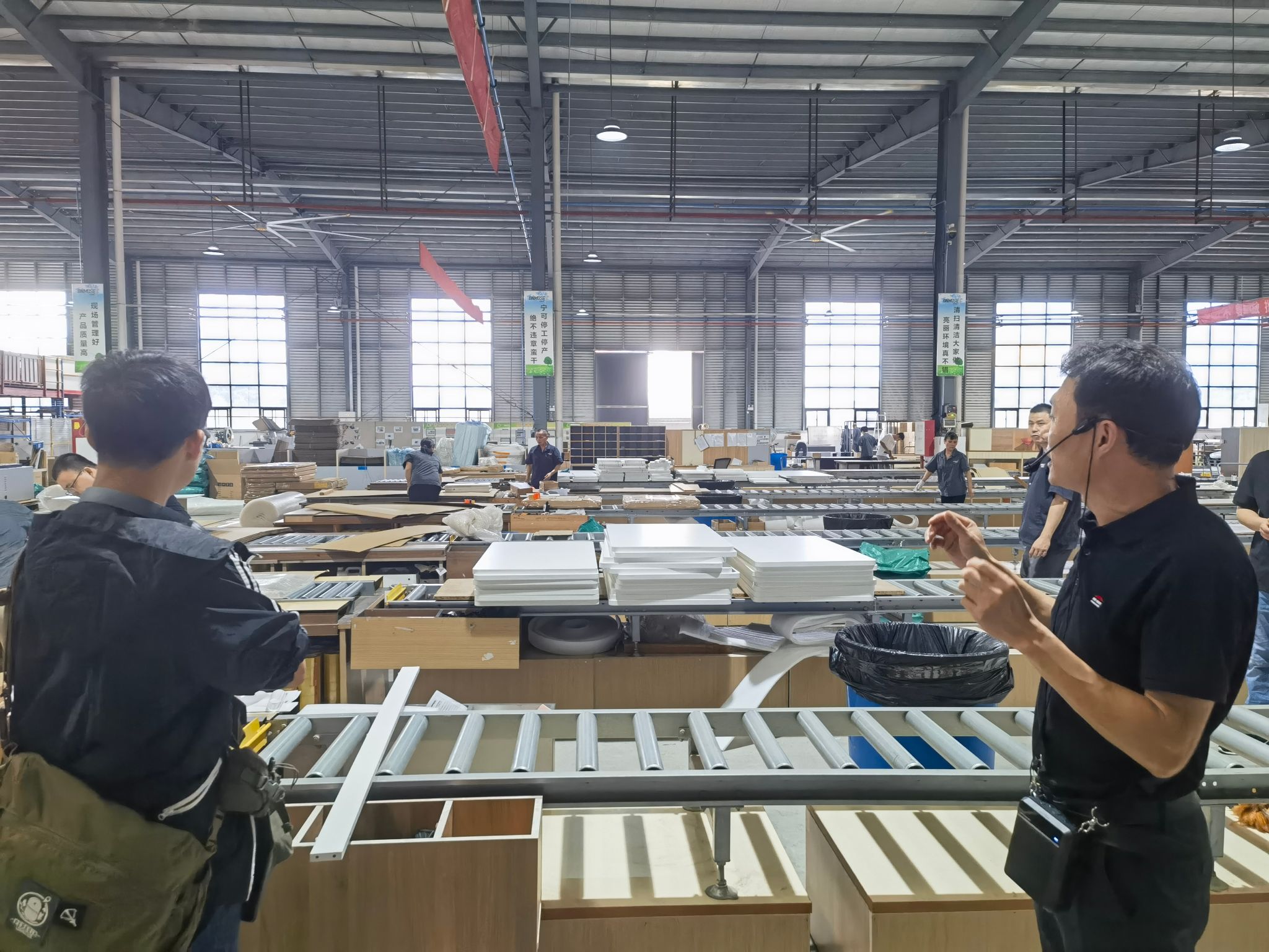 首先,师生们参观了合创优品的工厂车间。车间内机器轰鸣,工人们忙碌地操作着各种设备,整个环境显得既热闹又繁忙。尽管车间内温度较高,噪音较大,但师生们依然保持着高度的专注和热情。他们仔细观察着生产线的运作流程,对产品的生产工艺和质量控制有了更直观的认识。在参观过程中,师生们与车间工人进行了简短的交流。他们了解到,车间的工作环境虽然艰苦,但工人们凭借着对工作的热爱和专业的技能,确保了每一件产品的质量和精度。这种敬业精神和专业态度让师生们深受感动。
