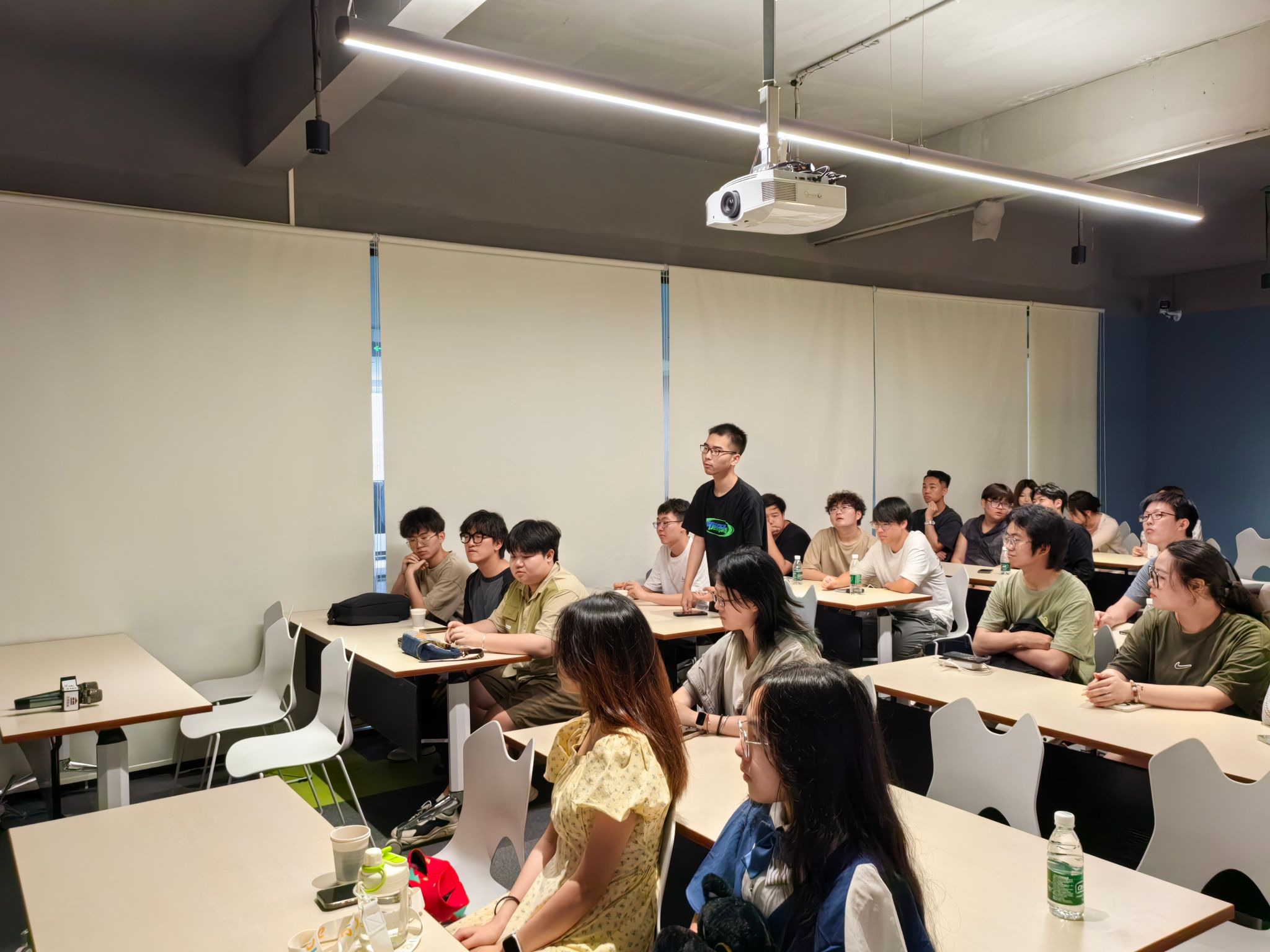 在调研活动的最后阶段,师生们与合创优品公司的负责人进行了深入的交流。同学们积极提问,就办公环境设计的发展趋势、市场需求与设计创新等问题进行了探讨。公司负责人不仅耐心解答了同学们的问题,还分享了自己在办公环境设计领域的丰富经验和独特见解。他鼓励同学们保持创新思维,关注行业动态,将所学知识与实际工作相结合,为未来的职业发展做好充分准备。