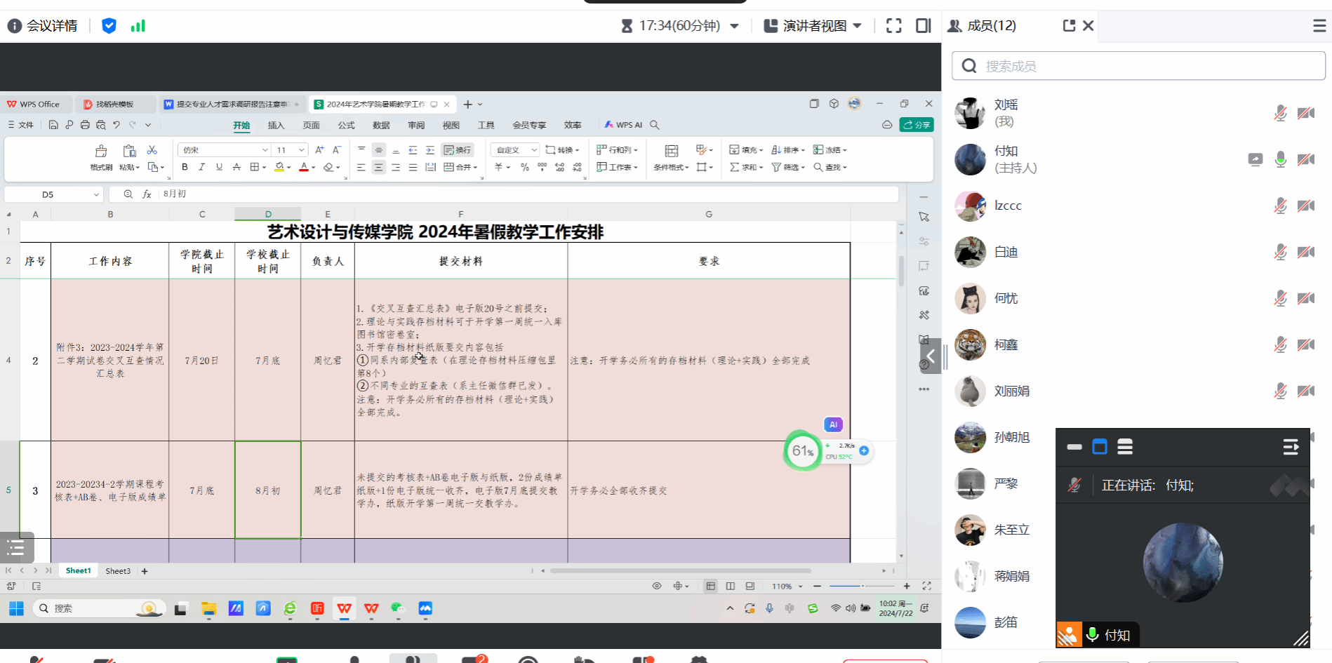 2024年7月23日上午10时,环境设计系在腾讯会议召开了2024年暑假工作安排会议,全面规划了即将到来的假期教学与个人发展工作。会议围绕三大核心议题展开,旨在总结经验、明确方向、促进教学相长。