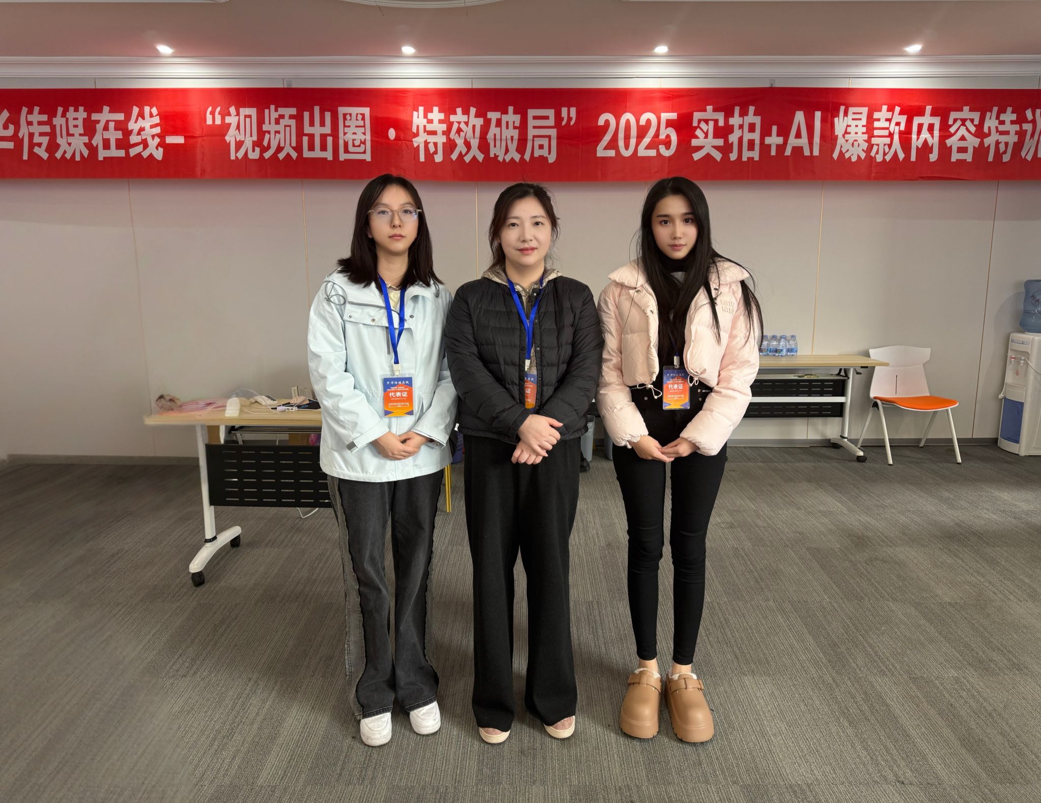为紧跟“人工智能+”的时代浪潮,进一步推动创意类专业课程改革与创新,12月11日至13日,我院网络与新媒体系系主任蔡姗和专业教师李芷暄、杨佳婧赴上海参加了由中华传媒在线举办的“视频出圈·特效破局:实拍+AI爆款内容创新特训营”。