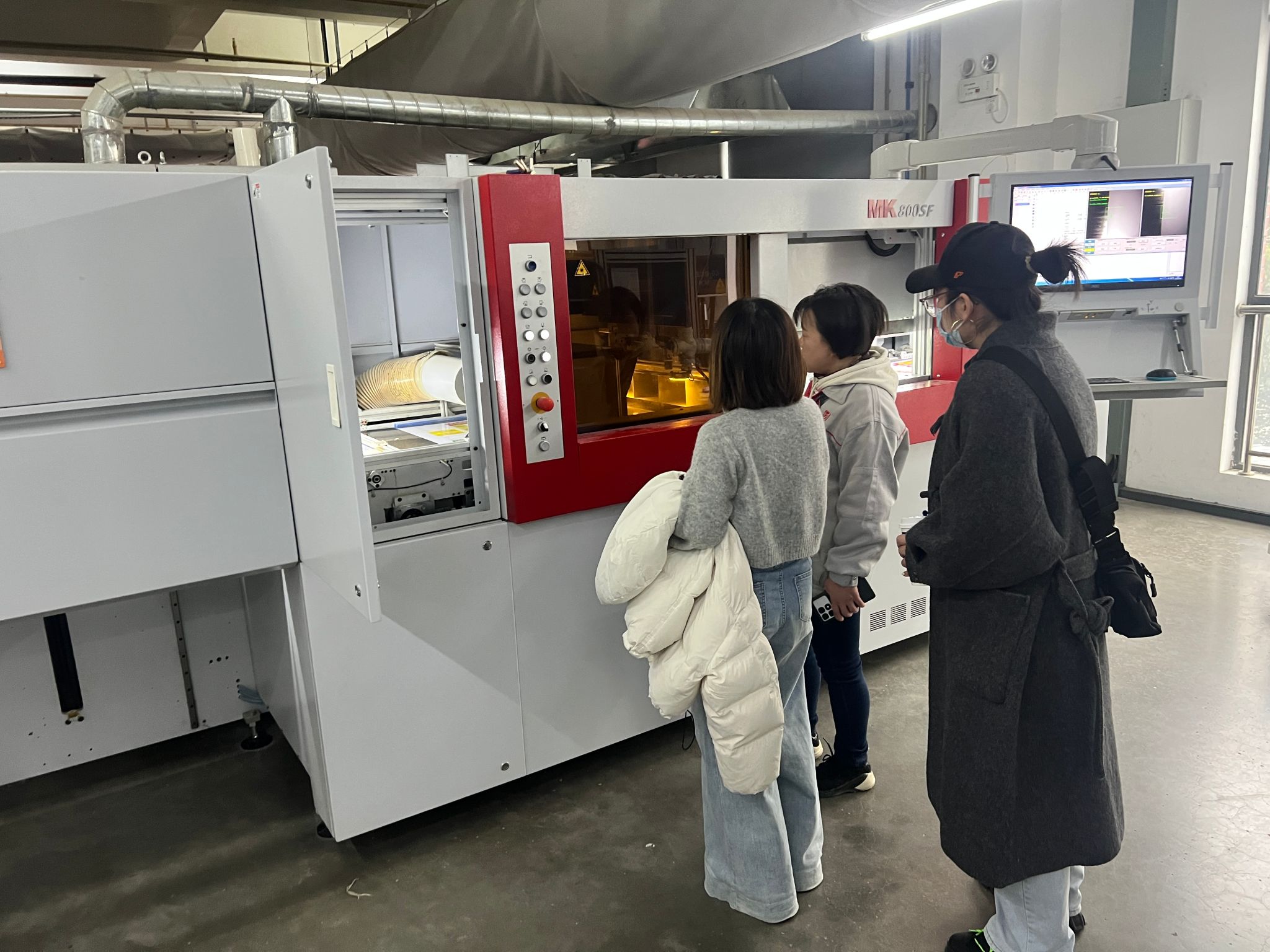 在武汉银翔印刷有限公司,企业负责人热情接待调研团队,重点参观了其绿色印刷智能车间,近距离观摩8色组智能胶印机、自动模切机等核心设备的运行细节。企业技术人员详细讲解了铜版纸、牛皮纸、可降解环保纸、特种纹理纸等适配书籍设计的材质特性,现场观摩了烫金、局部UV、凹凸压印等书籍封面常用工艺,深入剖析工艺参数与设计效果的关联,为《书籍设计》课程“工艺落地与书籍装帧”模块提供了鲜活案例。