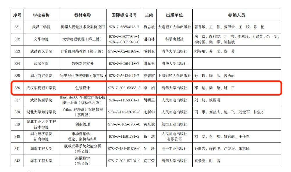 喜报!李娟教授团队主编《包装设计》教材入选湖北省省级规划教材