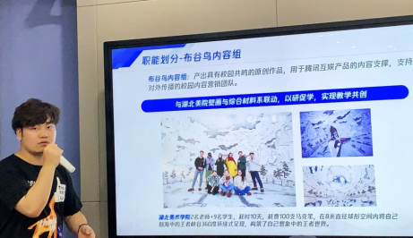 王天骄老师通过分享有文化、有创意、有故事的电竞营销,以全新的视角打开了同学们最熟悉的领域,尤其是传统文化和社会责任感在案例中的引入。他还带来了超棒的腾讯实习机会和大号奶牛QQ公仔,现场有多位同学参与互动,一方面想知道到腾讯实习的能力要求,另一方面也希望获得更多的关于腾讯电竞营销的案例。王老师现场为同学们建立了“华夏x腾讯TCA”群组,方便未来案例的分享,同时请同学们多多关注腾讯视频、新浪微博、B站、今日头条、虎牙直播等与他们进行长期合作的媒体,从而进行更多一手案例的学习。最后,潘君老师对本次企业导师进课堂进行了总结,期待华夏学院和腾讯互娱携手共创更精品的“湖北”高校内容,并期待未来在鹅厂看到更多的华夏广告人!
