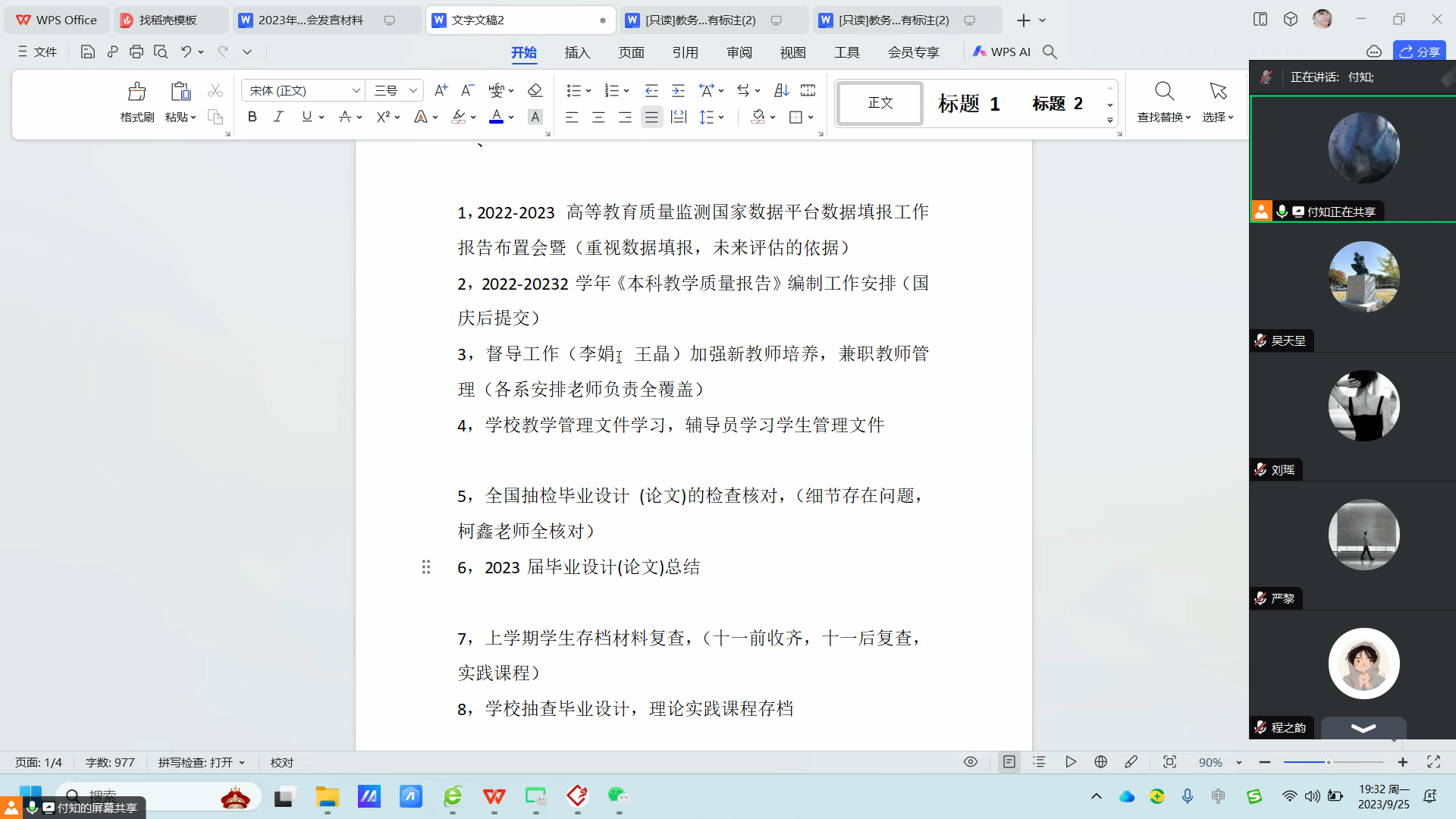 2023年9月25日环境设计系开展了2023-2024学年第一学期的重点工作布置会。系主任付知主持,环艺教职工参加会议。