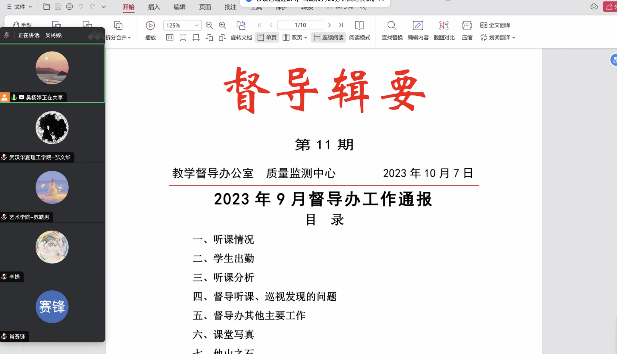 吴老师就学院督导反馈《督导辑要》进行了细致的解读,针对近期艺术设计与传媒学院的部分课堂存在的一些问题。吴老师对课堂建设和课堂秩序管理等方面给出了一些行之有效的方法。