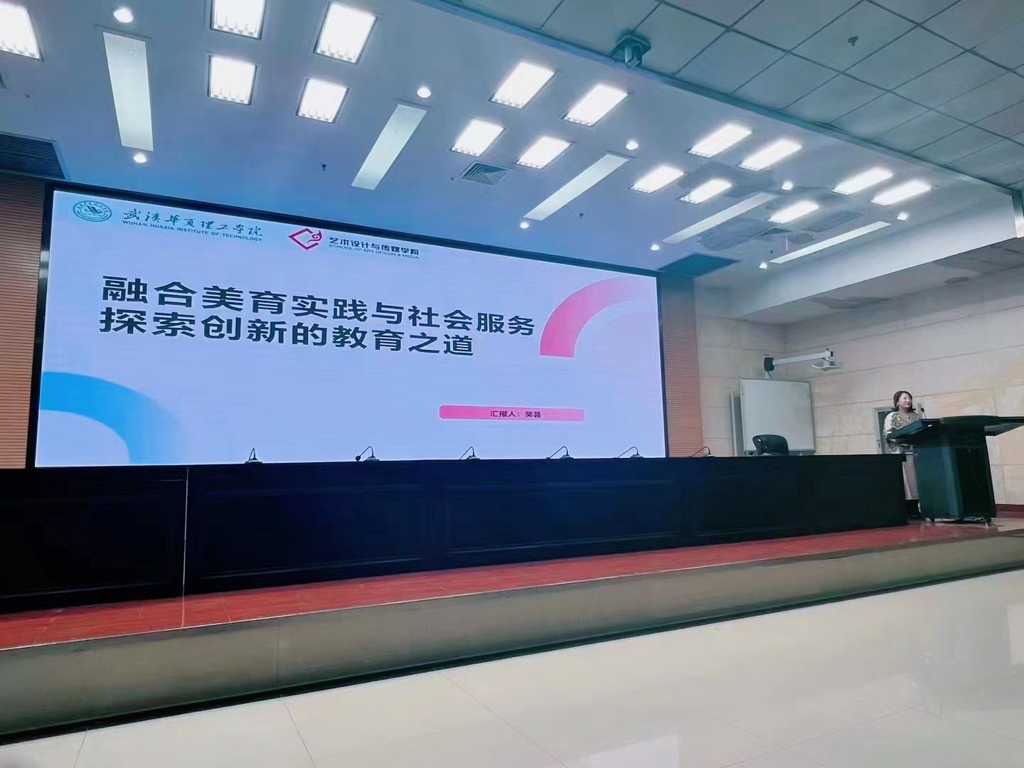 公共艺术课部的吴芸老师从社会服务角度,开展了“融合美育实践与社会服务:探索创新的教育之道”主题分享。探讨了美育教育融合礼仪服务、社会服务的实践路径。