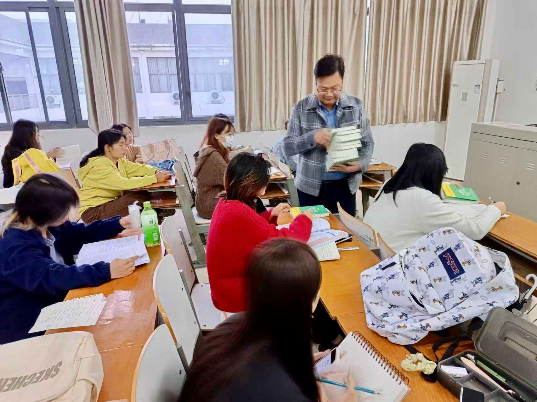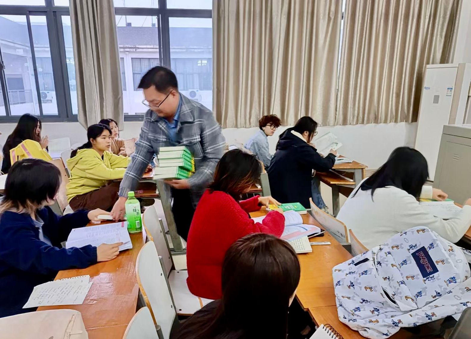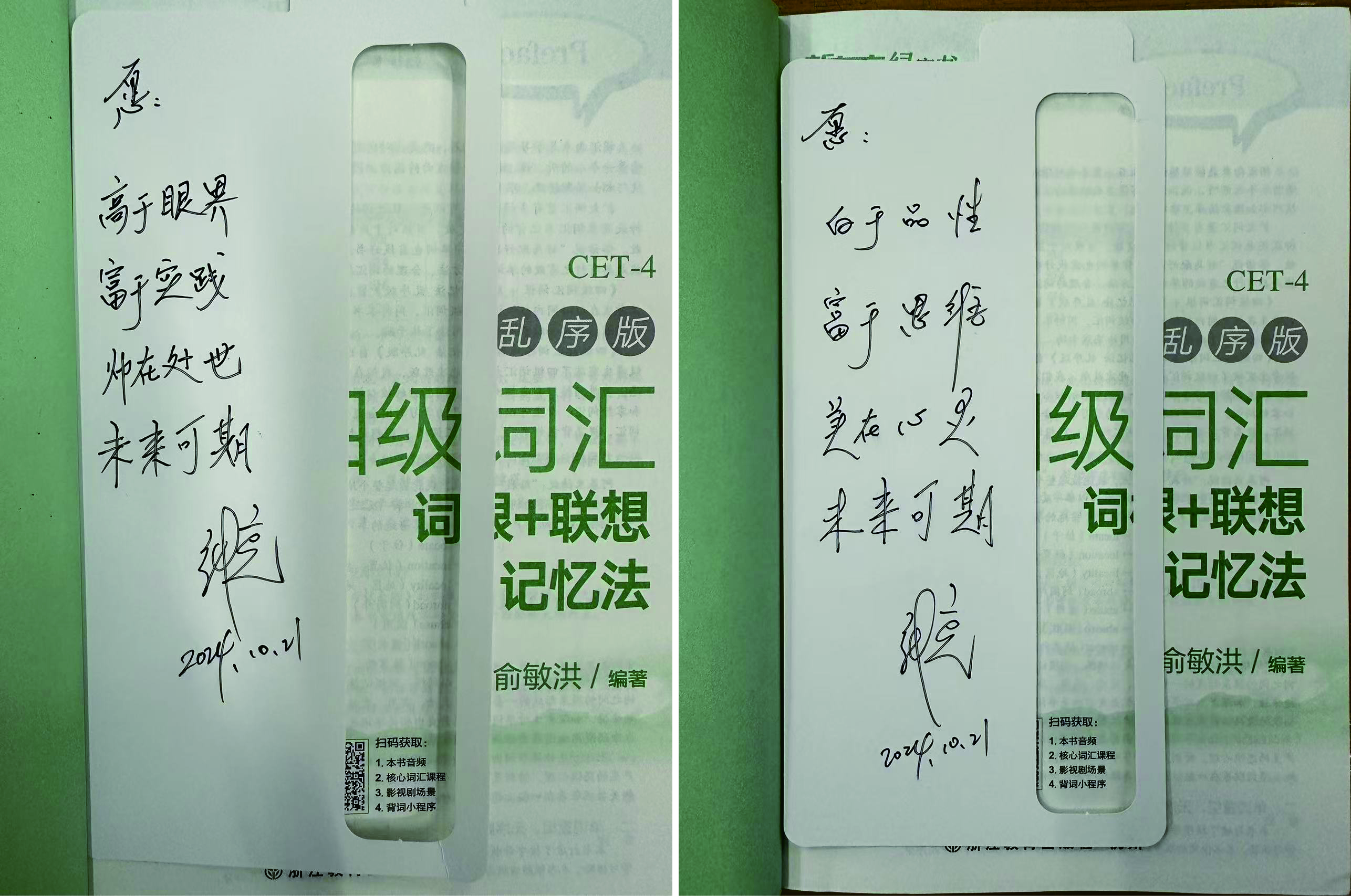 无畏秋雨的阵阵寒意,2024级环境设计专业的新生们早早来到自习室,满怀期待地迎接新一天的学习旅程。就在这时,一个意想不到的惊喜悄然降临——他们的导师班主任张亮老师,手提自费购置的英语学习书籍步入教室,逐一将写着“高富帅,未来可期”(高于眼界、富于实践、帅在处事)与“白富美,未来可期”(白于品性、富于思维、美在心灵)美好寄语的学习资料送到每一位同学手中。