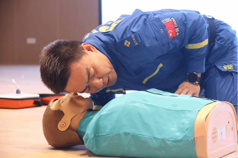 最后,杨俊超和杨堃队长带来了急救知识科普,讲解了心肺复苏和海姆立克急救法等关键技能。通过详细的讲解和实操演示,让志愿者们了解到急救的基本知识和操作流程。