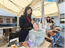 我院非遗研究中心非遗实践队受到社区邀请参与到本次活动中。本次活动由艺术学院非遗研究中心师生前往,有多名老师和学生志愿者积极参与。携带许多展品和产品在市集上进行展览与售买。
