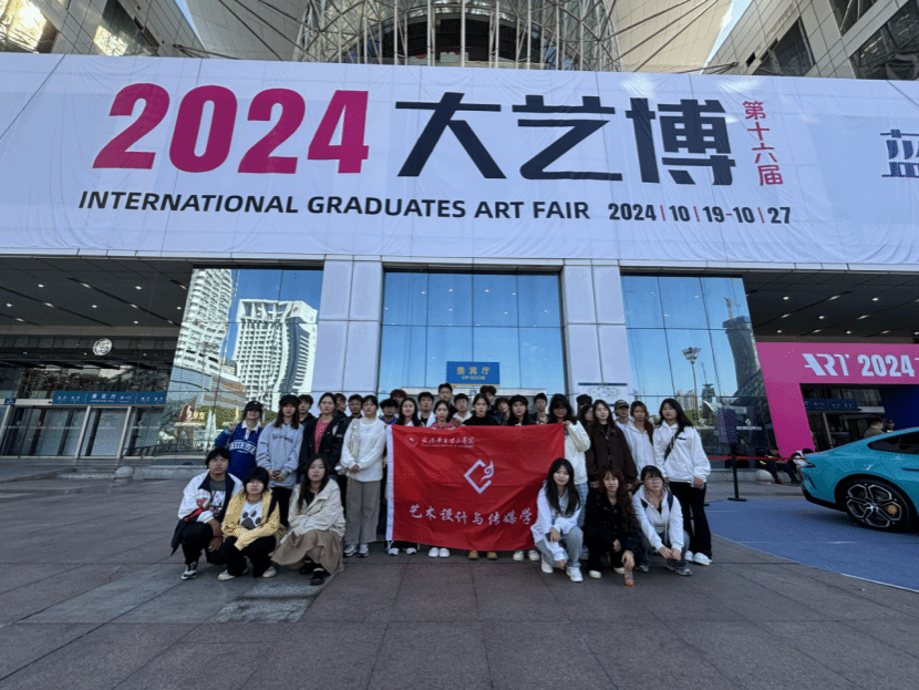 2024年10月24日下午,我院数字媒体艺术1241、1242班全体学生在王晶、张文君两位专业老师的带领下,乘车到武汉国际会展中心“第十六届国际大学生艺术博览会”现场参观学习。