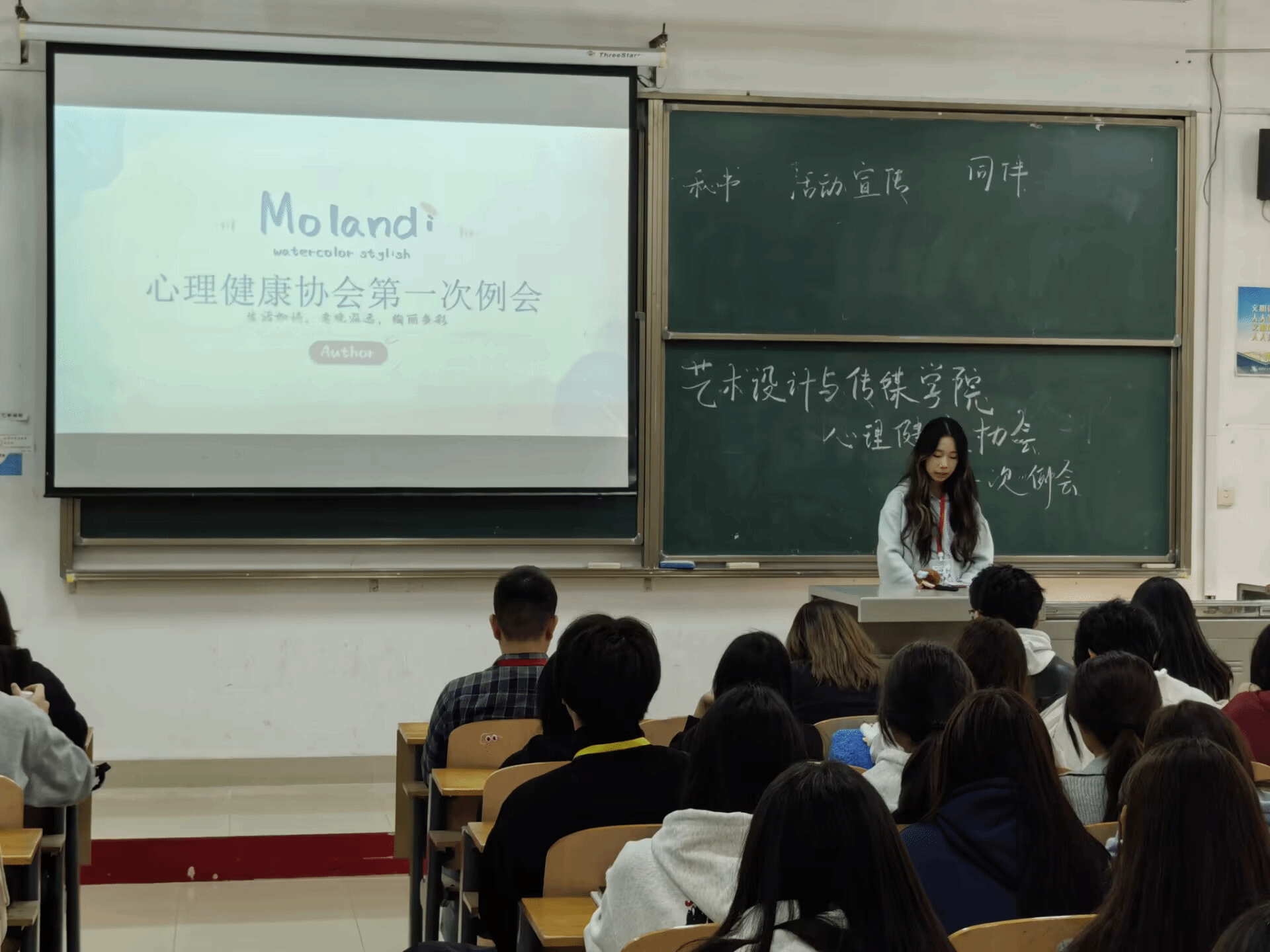为促进工作开展,加强团队建设,提高工作效率,提高成员凝聚力和团结力,2024年10月28日中午12点至12点半,艺术设计与传媒学院心理健康协会第一次例会在2号教学楼106教室召开,本次例会由心理健康协会全体成员共同参与。