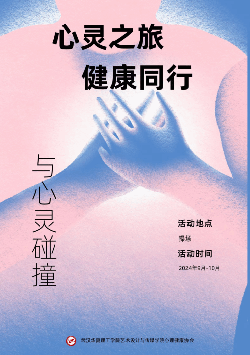 为提高大学生对心理健康的认识和重视程度,缓解大学生的心理压力,增强大学生的心理素质,艺术设计与传媒学院心理健康协会9月-10月在操场举办“心随艺动”系列活动:心灵之旅,健康同行主题活动,本次活动由学院学工办主任刘静主持召开,学院心理协会会长农滢羽具体负责系列活动。参加成员有各班的学生代表、心协全体成员。