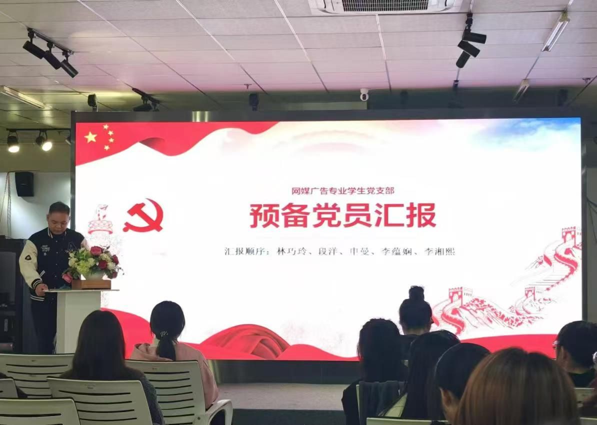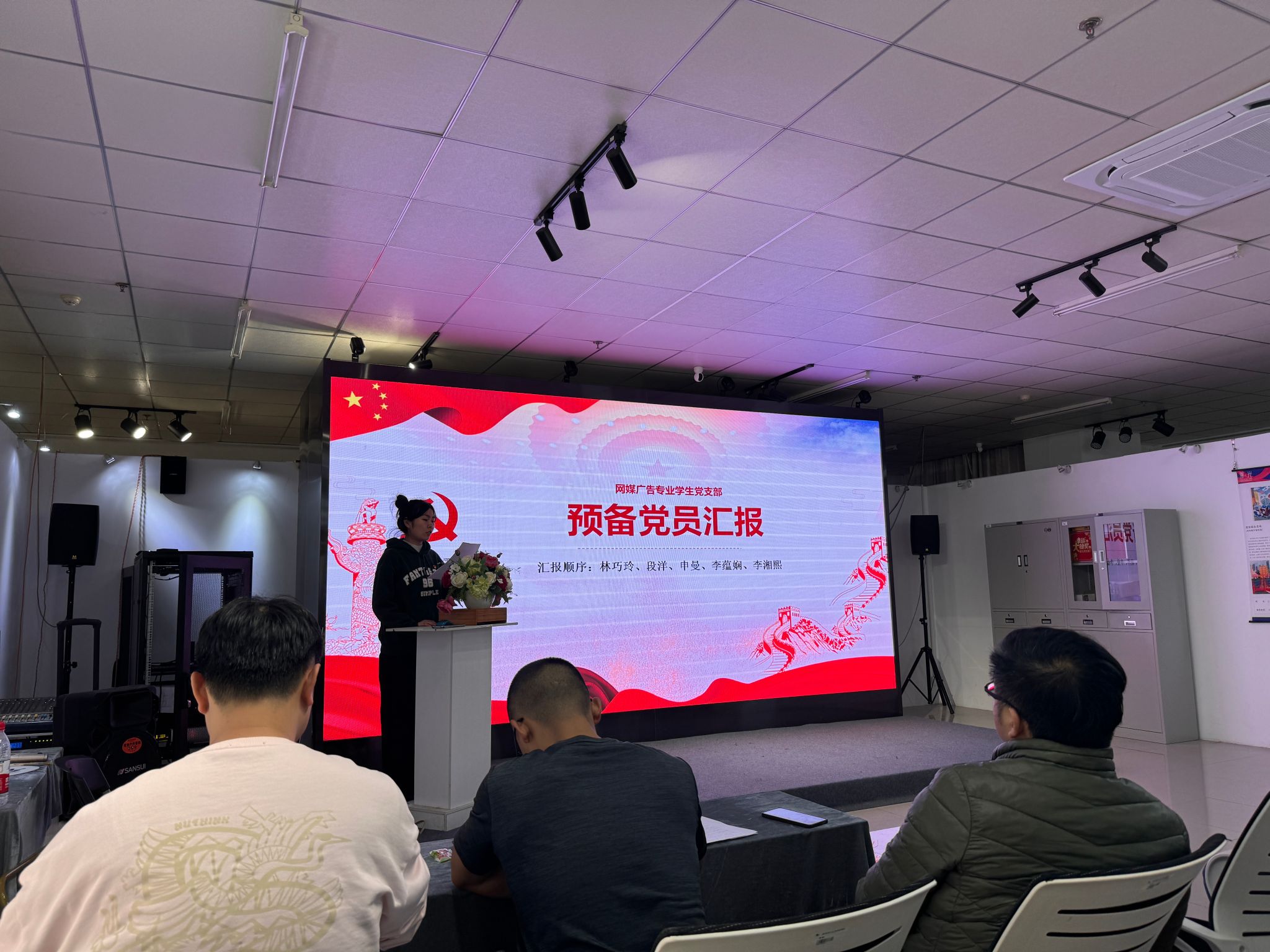 随后,进行了大会第一项,全体同志起立奏唱国歌。接着,大会第二项,预备党员汇报。艺术设计专业学生第一党支部、艺术设计专业学生第二党支部、网媒广告专业学生党支部的预备党员们依次上台详细汇报了个人在预备期间思想、学习、工作和生活等方面的表现及进步情况,表达了对党的忠诚和为党的事业奋斗的决心。
