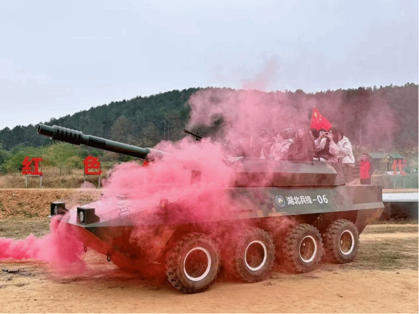 上午,在兵锋教育基地,同学们迎来了令人热血沸腾的项目——乘坐坦克车。从图片中可以看到,同学们兴奋地坐在坦克车上,脸上洋溢着激动与自豪。坦克车缓缓启动,它所行驶过的每一寸土地仿佛都在诉说着国防力量的坚实可靠,这一体验不仅是感官上的刺激,更是心灵上对国家安全保障力量的深刻认知。