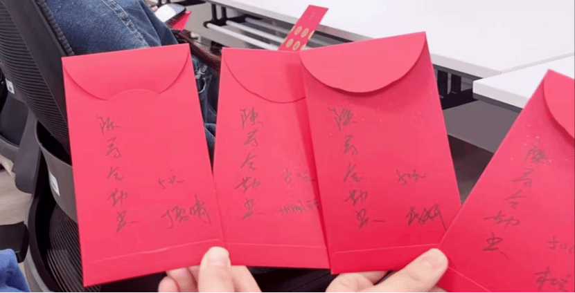 而此次活动的惊喜还不止于此,在座谈会的结尾,辅导员陈军又亲手为该获奖学生颁发了个人设计的红包。这一特别的奖励形式,更是将这份鼓励与关怀落到了实处,让学生切实感受到了老师们对学校良好学风的高度重视与褒奖。