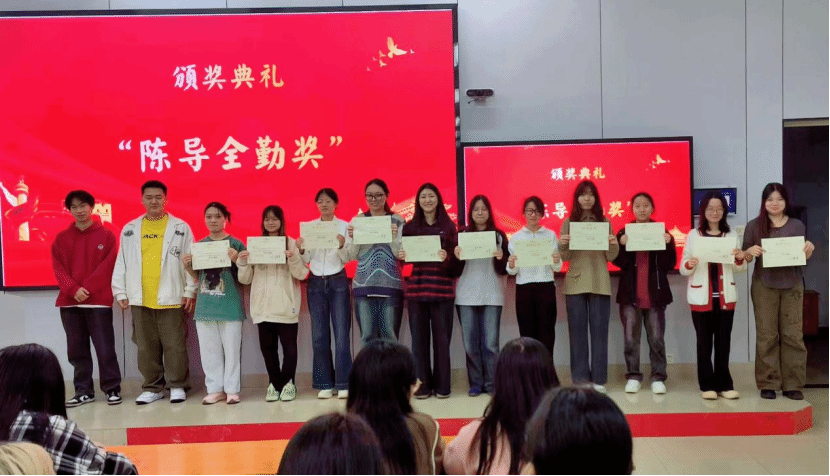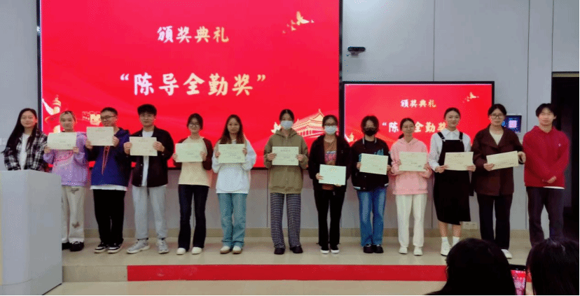 近日,一场特别的颁奖仪式在晚点评教室举行,仪式上,我院辅导员陈军为23级入学近15个月以来上课全勤的学生颁发了自己设计的“陈导全勤奖”证书。