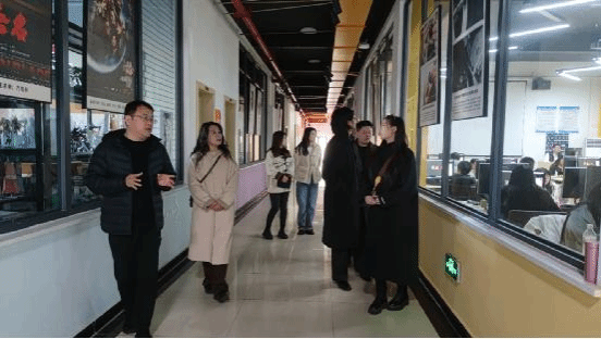 在黄淮学院动画学院副院长李峰和数字媒体艺术系主任韩文利等四名骨干教师的热情接待下,吴杨婷一行参观了学院的硬件设施和教学环境。参观过程中,双方就各自学院的发展历程、专业特色、教学资源等方面进行了充分的交流和分享。