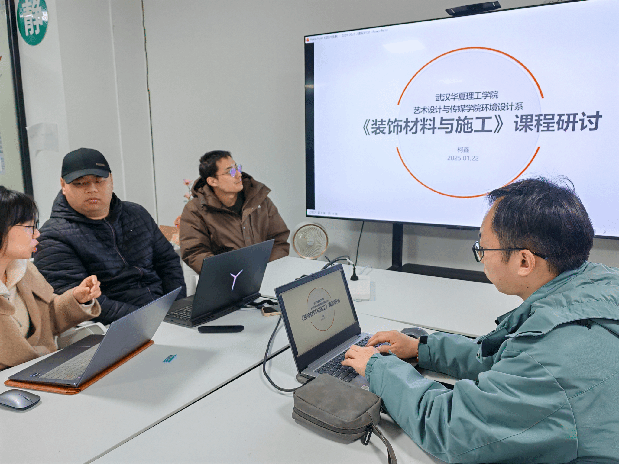 在磨课过程中,各位老师围绕教学目标、内容整合、方法创新等方面展开了深入研讨。柯鑫老师作为下学期课程的主讲教师,积极发表自己对课程的初步设想,从基础理论的讲解到实践环节的设置,都提出了诸多新颖思路。环境设计系室内方向负责人刘丽娟老师凭借多年教学经验,着重强调了教学内容与行业实际的紧密结合,且应加强线下实践教学力度,规划实地参观本地知名装饰材料市场,让学生直观感受材料实物、施工环境与工艺细节,增强感性认识。吴天呈老师则在教学方法上提供了宝贵建议,倡导线上线下混合式教学模式的深度优化,充分利用超星学习通平台丰富功能。刘仲春老师也分享了自己在课程设计中的独特见解,提出通过小组调研汇报等教学方式,培养学生团队协作、沟通表达与解决实际问题能力。