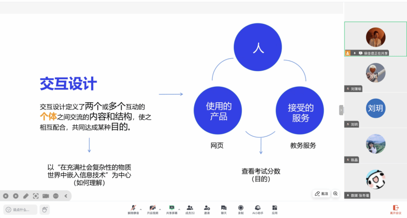 《交互设计原理与产品开发》课程重视实践性,不仅要求学生掌握理论知识,还需要培养学生的创新思维和实际操作能力。通过磨课,五位老师深入探讨如何将理论与实践相结合,更好地引导学生理解和应用交互设计原理,从而提高学生的产品开发能力,促进教师之间的交流与合作,激发教学灵感,提升教师自身的教学水平。