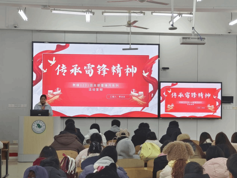 为展示学雷锋志愿服务月活动的风采,也为今年参加本次活动的班级做一次活动开展示范,我们邀请到2024年雷锋月“优秀活动”的班级进行分享。数媒1231团支部李冰冰和网媒1233团支部段欣怡分别展示了班级学雷锋系列活动的计划,线上宣传,校内外志愿者服务活动、活动感想与总结等,赢得了全体同学的掌声。