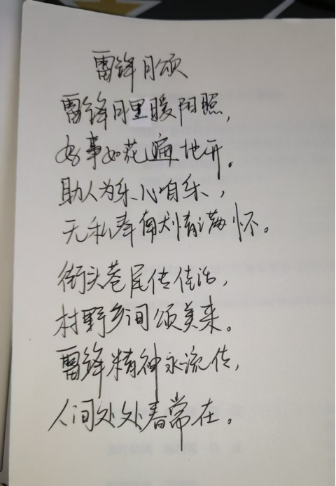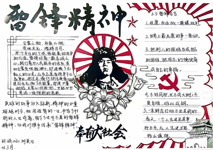 团支书在活动中表示:“通过绘画和诗歌,我们不仅表达了对雷锋精神的敬仰,还希望能够激发更多同学去学习雷锋的热情,将雷锋精神传承下去。”活动现场,团支部成员们相互交流创作心得,分享自己对雷锋精神的理解。他们纷纷表示,通过这次活动,更加深刻地体会到了雷锋精神的时代意义,并将以雷锋为榜样,争做新时代的好青年。