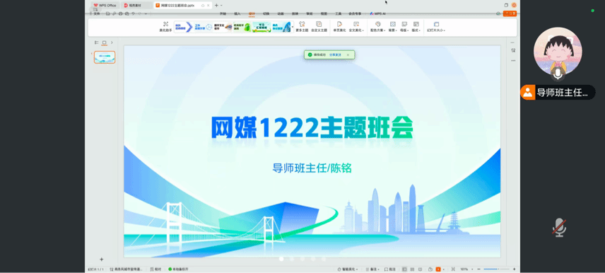 为帮助同学们更好地应对即将到来的就业与实习挑战,掌握当前热门的人工智能生成内容(AIGC)技术,我班于9月15日中午12:40召开了一场线上主题班会。班会由导师班主任陈铭老师主持,全体同学参加。