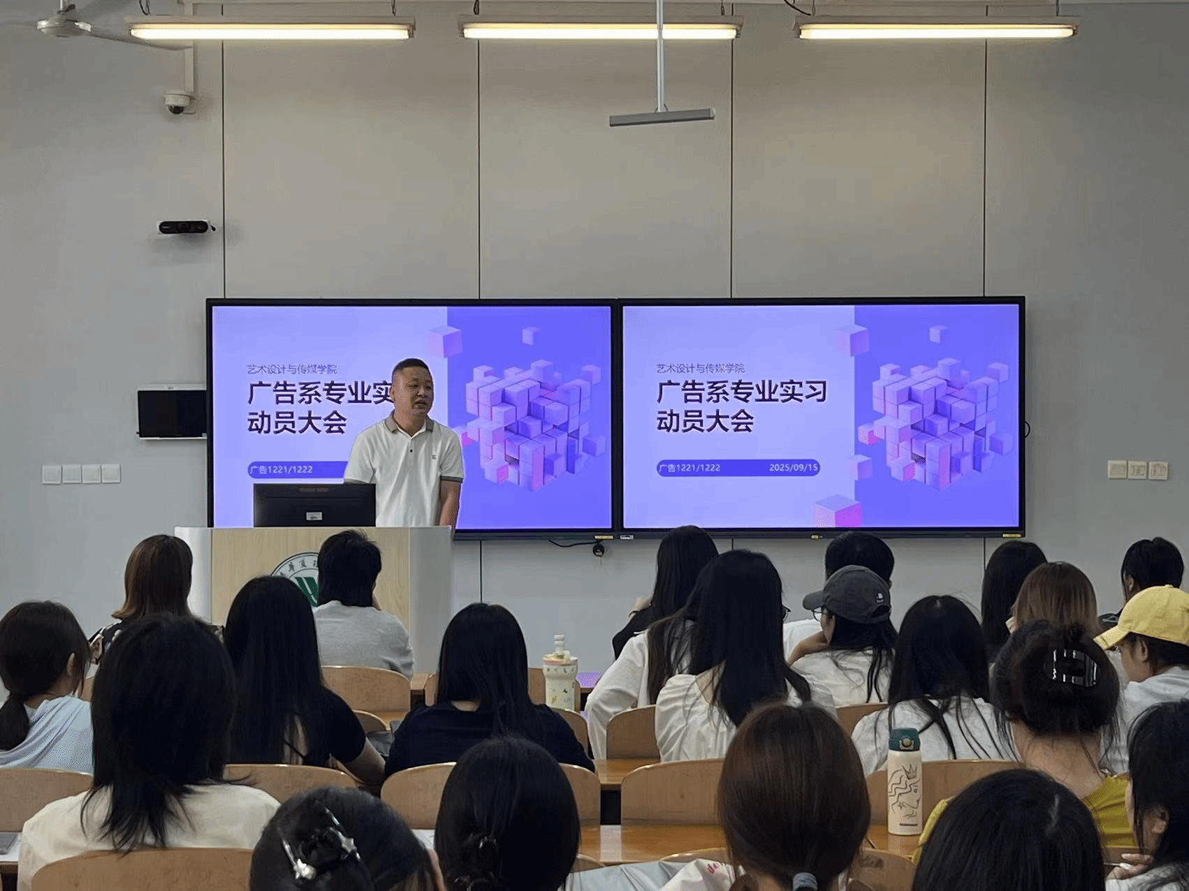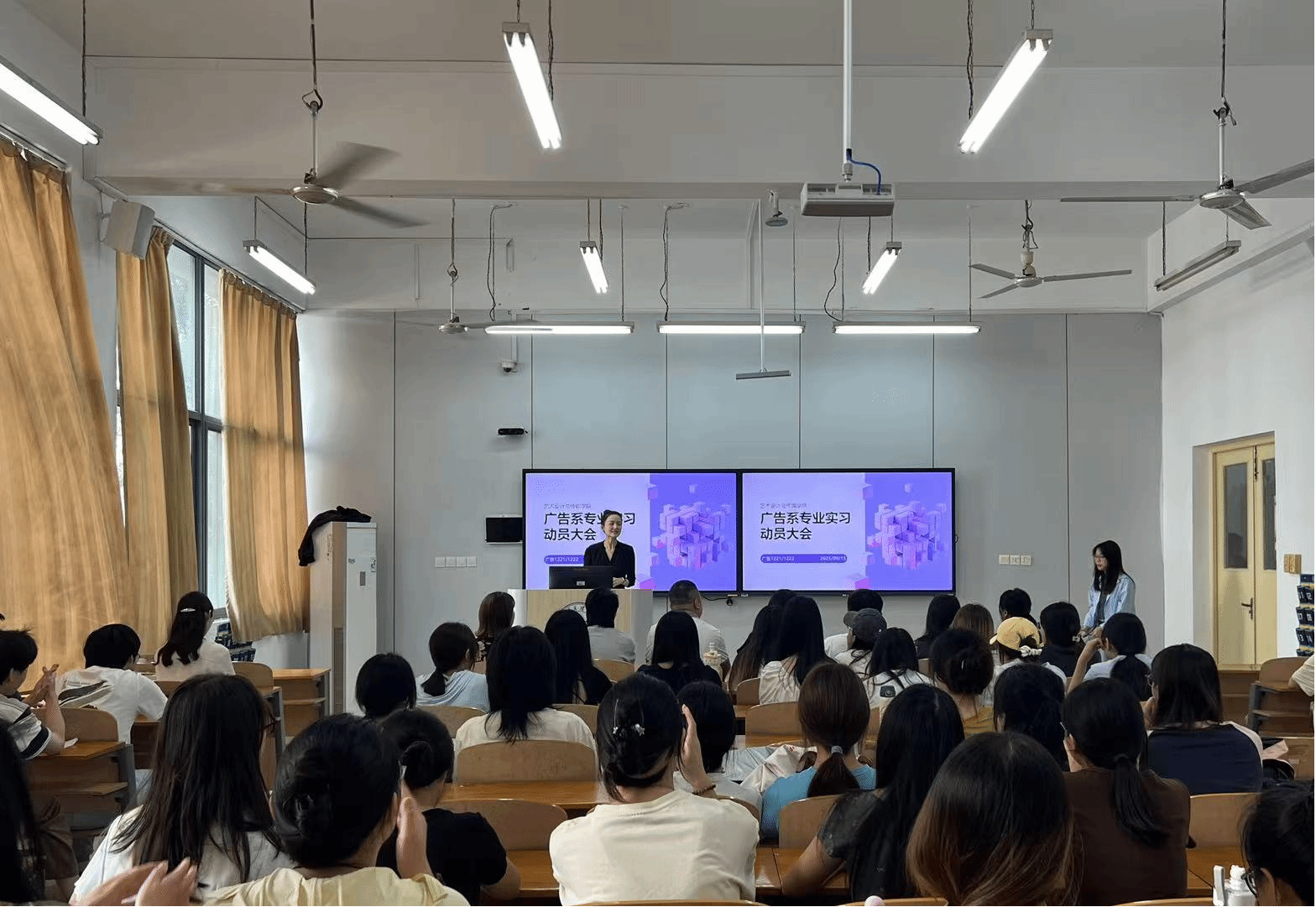 此次动员大会全面涵盖了实习政策、任务安排与成长建议,为同学们即将开始的专业实习明确了方向、增强了信心。广告系多位任课教师也一同到场,体现出全系对学生专业实习工作的高度重视与支持。会议在热烈的氛围中圆满结束。
