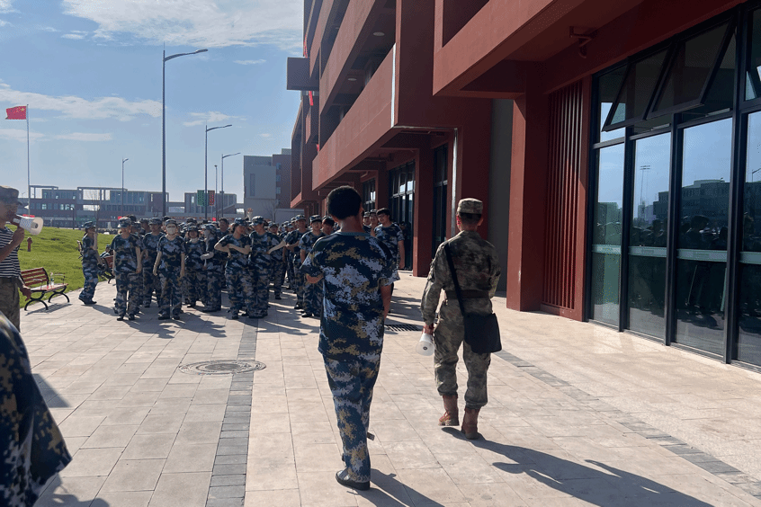 走出课堂,校园的户外场地成为新生们的另一个“战场”。在教官的严格指挥下,他们进行队列训练、正步走等科目。挺拔的军姿、整齐的步伐,是他们日复一日训练的成果。烈日下,汗水浸湿了迷彩服,但他们眼神坚定,毫不退缩;口号声铿锵有力,回荡在校园的每个角落,彰显着2025级新生不怕苦、不怕累的精神风貌。