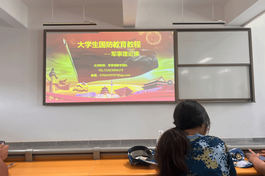 在教室的军事理论课堂上,“大学生国防教育教程——军事理论课”的课件在屏幕上熠熠生辉。主讲团队以专业严谨的态度,为新生们讲解国防知识、军事战略等内容,从理论层面夯实新生的国防观念,让大家深刻认识到国防是国家生存与发展的基石,身为新时代大学生,肩负着捍卫国家主权、安全、发展利益的责任。课堂上,新生们专注聆听,在思想的洗礼中,国防意识悄然扎根心底。