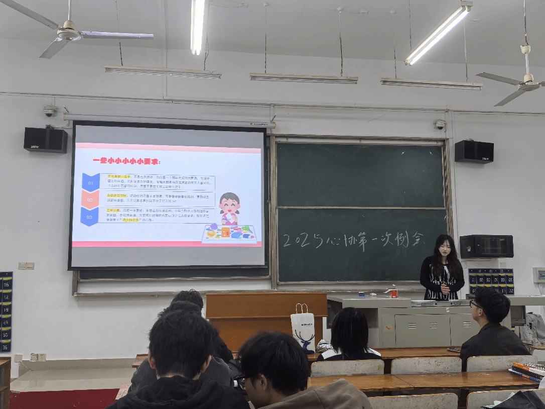 本次例会由协会会长雷爽主持。会议伊始,雷爽会长对新加入的部长、副部长表示欢迎,随后引导各部门新部长及副部长依次进行自我介绍,大家从个人兴趣、对部门工作的期待等方面展开分享,现场氛围轻松热烈。自我介绍环节后,雷爽会长详细介绍了协会各部门的职责:策划部负责心理健康活动的创意策划与流程设计;宣传部承担活动宣传推广、公众号运营等工作;外联部主要对接校内外资源,为活动开展争取支持。同时,她明确了新学期的要求,强调各部门需加强沟通联动,在开展常规心理健康科普、心理沙龙等活动的基础上,鼓励大家继续创新,结合艺术设计与传媒专业特色,策划心理主题短视频创作大赛,心理健康文创设计展等新颖活动,让心理健康宣传更具吸引力与影响力,鼓励各部门在做好常规工作的基础上大胆创新,打造具有学院特色的心理健康品牌活动。会长表示希望大家以本次例会为起点,在协作中成长,在创新中突破,共同为学院学生的心理健康保驾护航。
