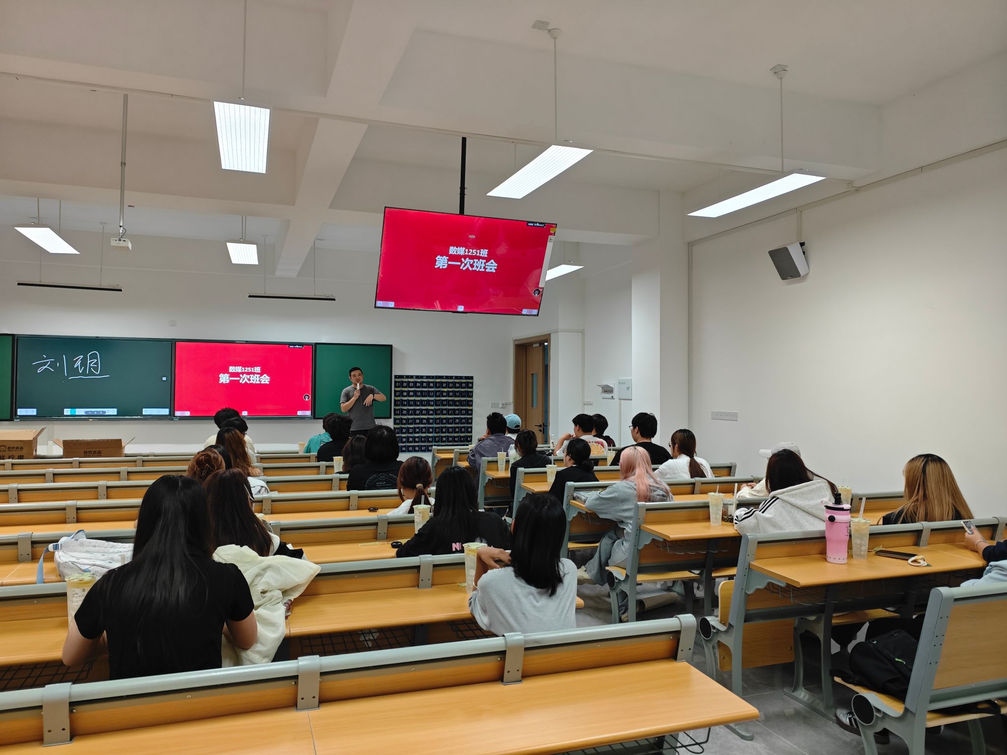 10月12日晚,数媒1251班新生首次班会在新校区B307教室举行。班主任刘玥老师与新生初次相聚,围绕“如何开启充实有意义的大学生活”展开交流,为新生们带来了一堂温暖且充实的“开学第一课”。