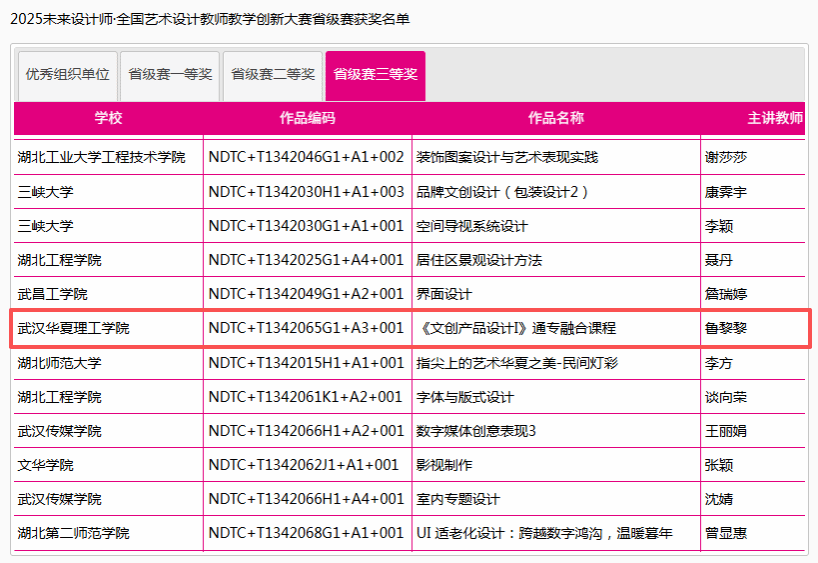我院教师在2025未来设计师·全国艺术设计教师教学创新大赛湖北赛区中荣获佳绩