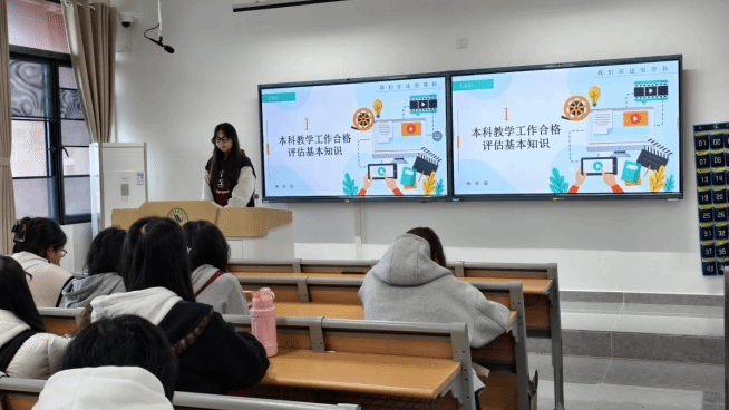 随后,杨紫琪围绕学校教学工作合格评估的基本知识展开详细讲解。她通过精心制作的PPT,向同学们全面阐述了教学工作合格评估的背景意义,它是对学校教学工作的一次全面检验,关乎学校的发展前景,也与每一位同学的学习生活息息相关。