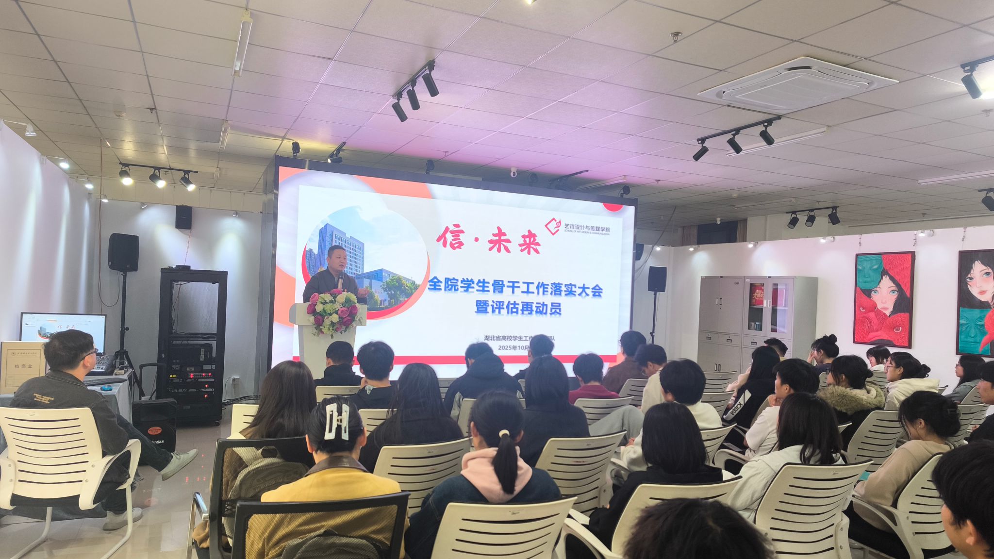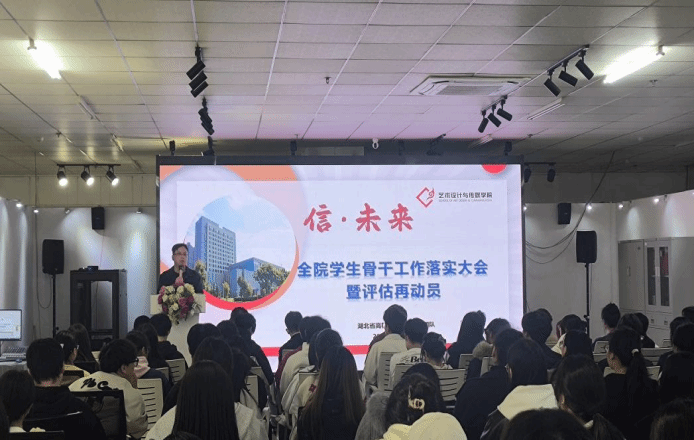10月30日18:00,我院于艺术馆三楼会议室召开“信·未来”全院学生骨干工作落实大会暨评估再动员大会。为全面迎接即将到来的高校本科教学工作合格评估,着力营造优良院风学风,学工办主任刘静与党总支组织员黄旭龙老师、各学生组织负责人、班级骨干代表共同参会。